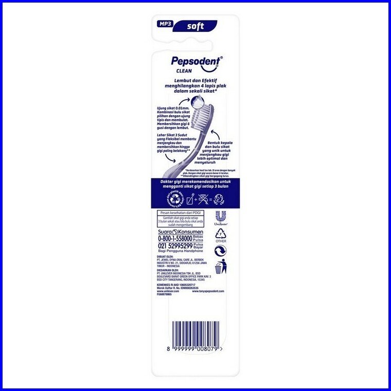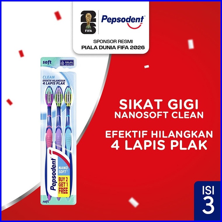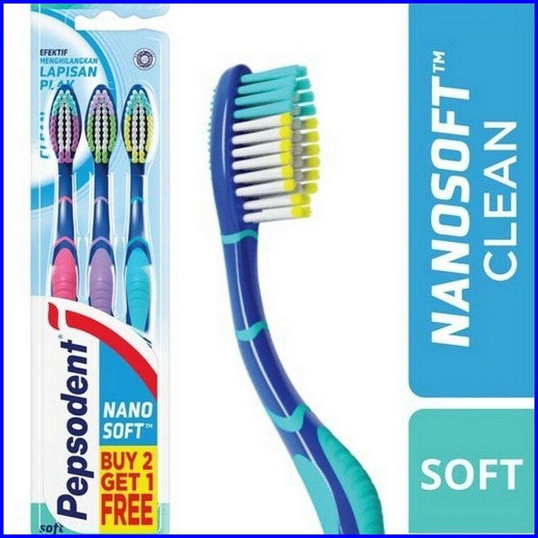 Pepsodent Sikat Gigi Nanosoft Clean Isi 3 Lembut Efektif