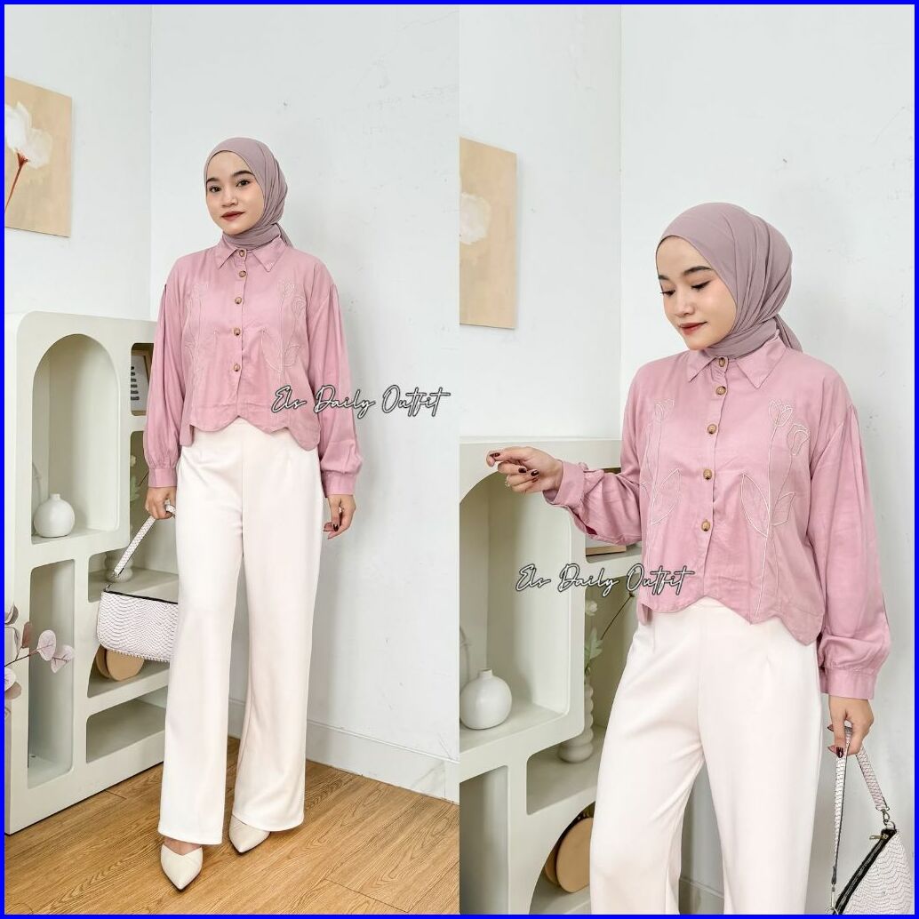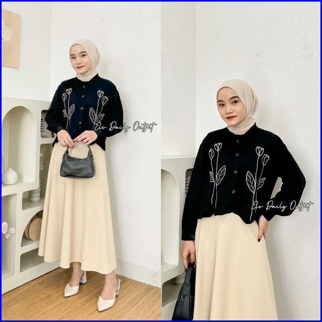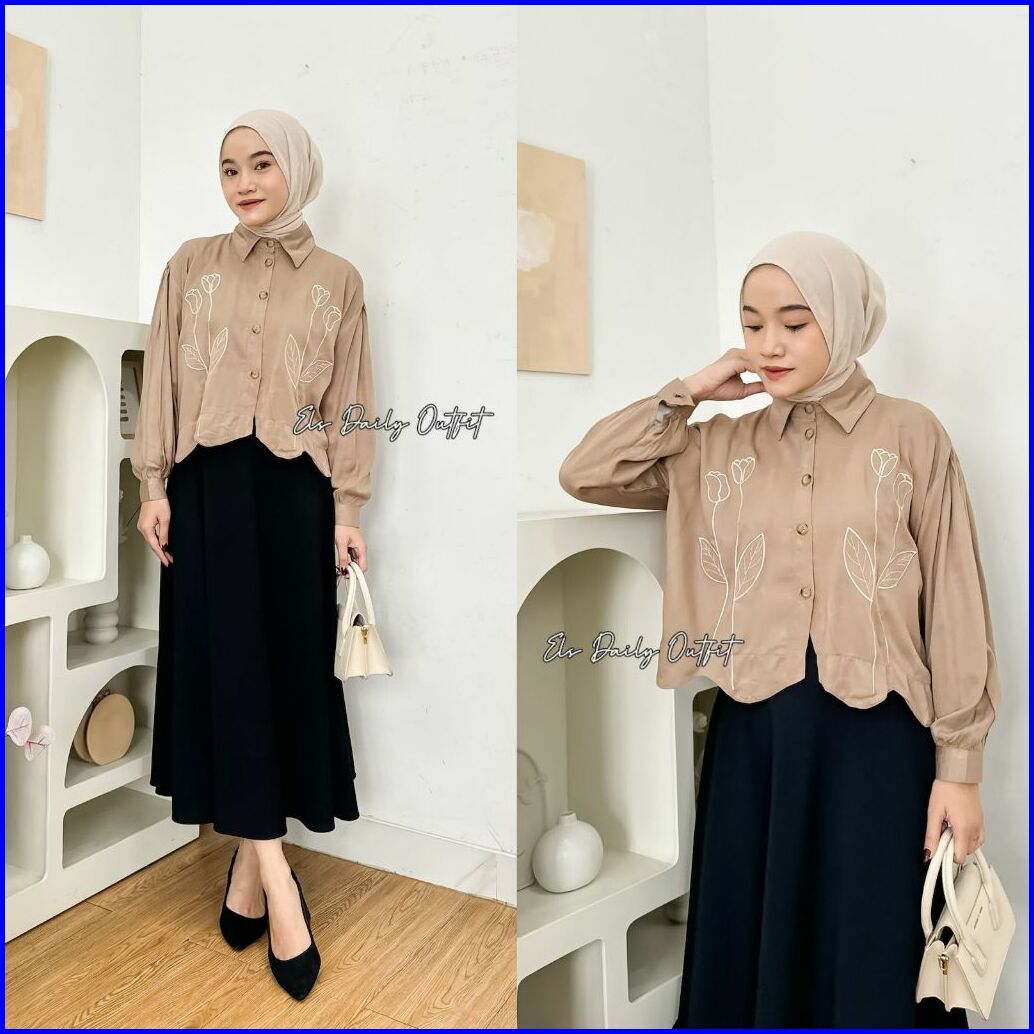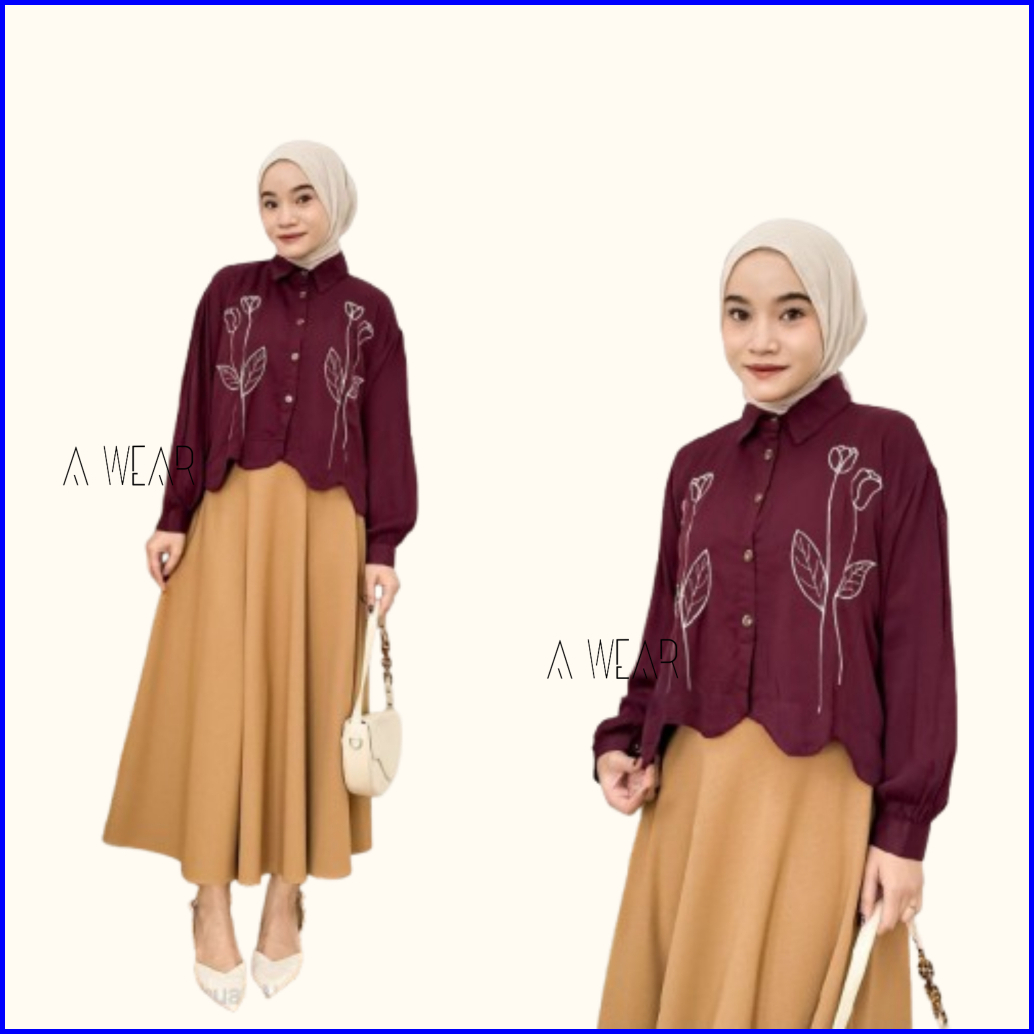 A Wear - Camary Flower Kemeja Rayon Twill Bordir Bunga Crop Lengan Panjang
