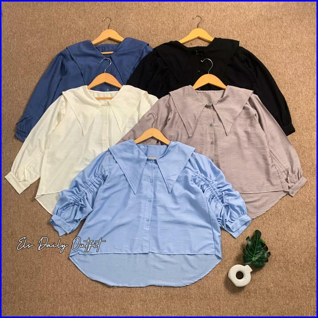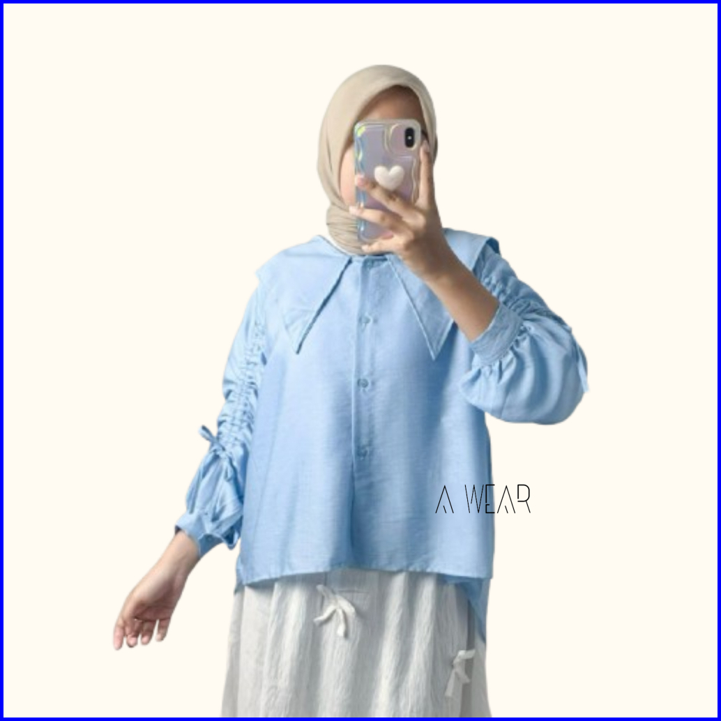 A Wear - Elma Blouse Polo Linen Lengan Serut Kerah Sailor