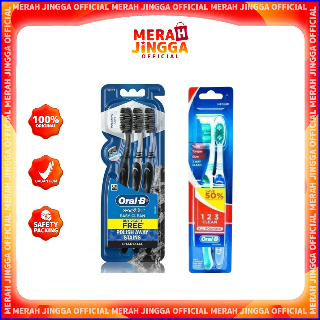 Oral B Oral-b Sikat Gigi All Rounder 123 Series Complete Easy Clean Charcoal Merah Jingga