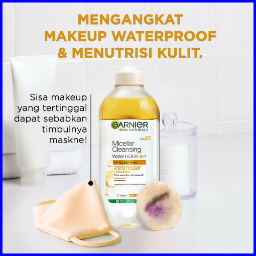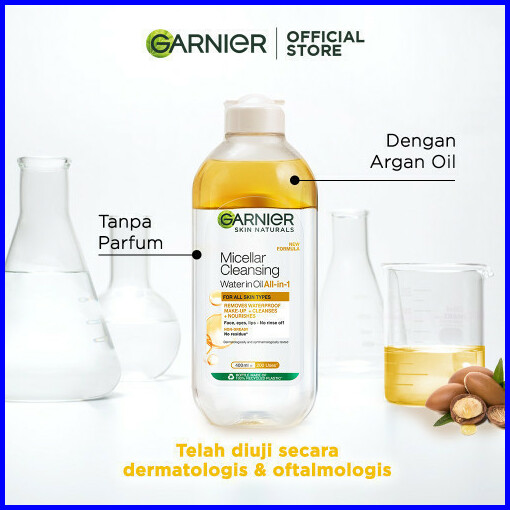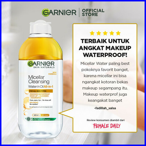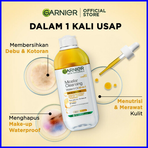 Paket Hemat Isi 3 Garnier Micellar Water Oil Infused 400 Ml - Skincare Pembersih Wajah Dan Makeup Waterproof