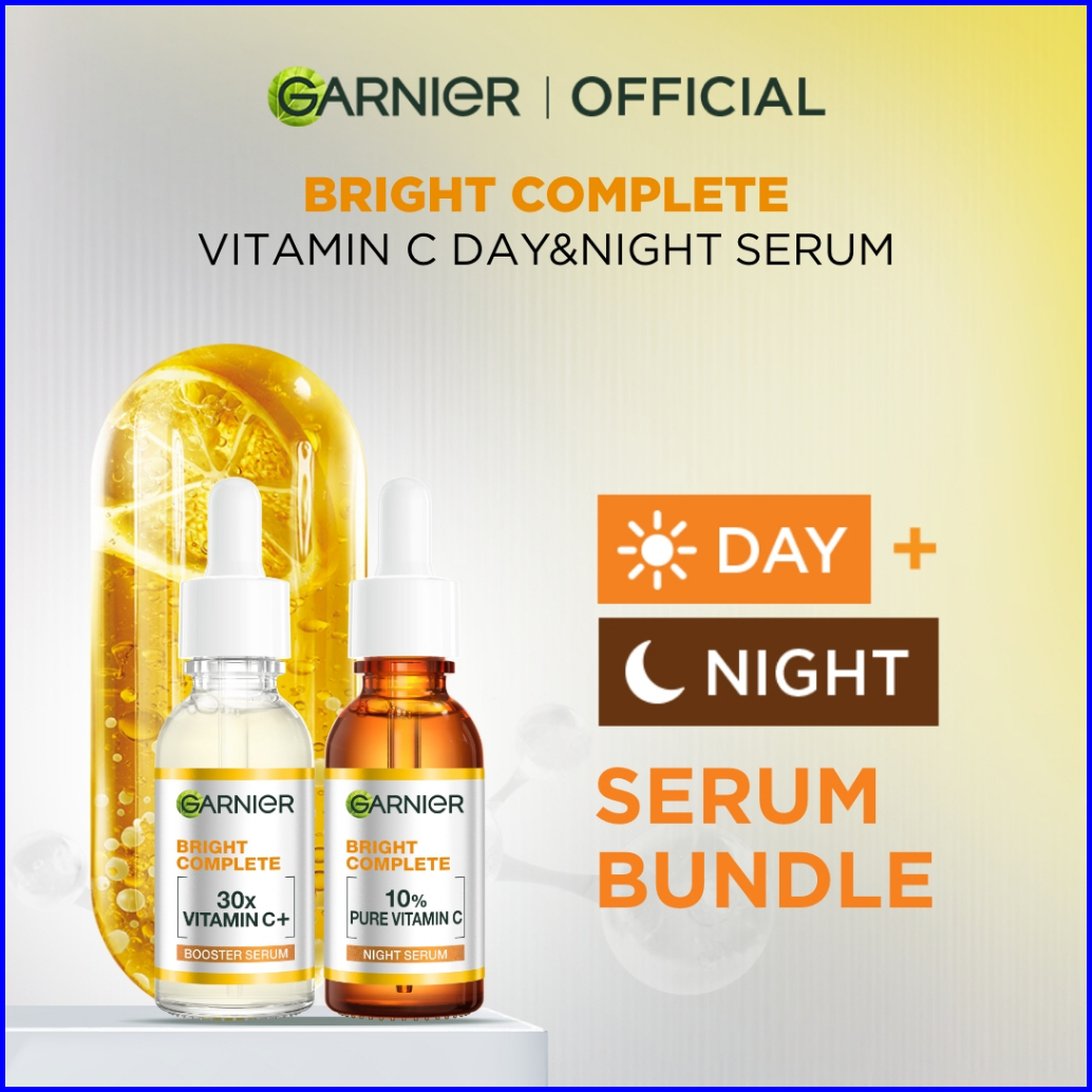 Paket Skincare Garnier Bright Complete Vitamin C Day Night Serum Kit Paket Serum Pagi Malam Dengan 2x Vitamin C Power Un
