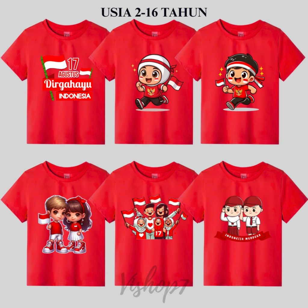 Kaos Anak 17 Agustus/HUT RI/Kemerdekaan Indonesia Warna Merah Laki-Laki Perempuan 2-16 Tahun