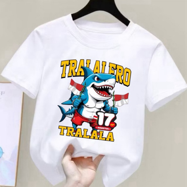 Kaos Anak Anak Karakter Tralalero Tralala 17 Agustus Umur 2-16 Tahun