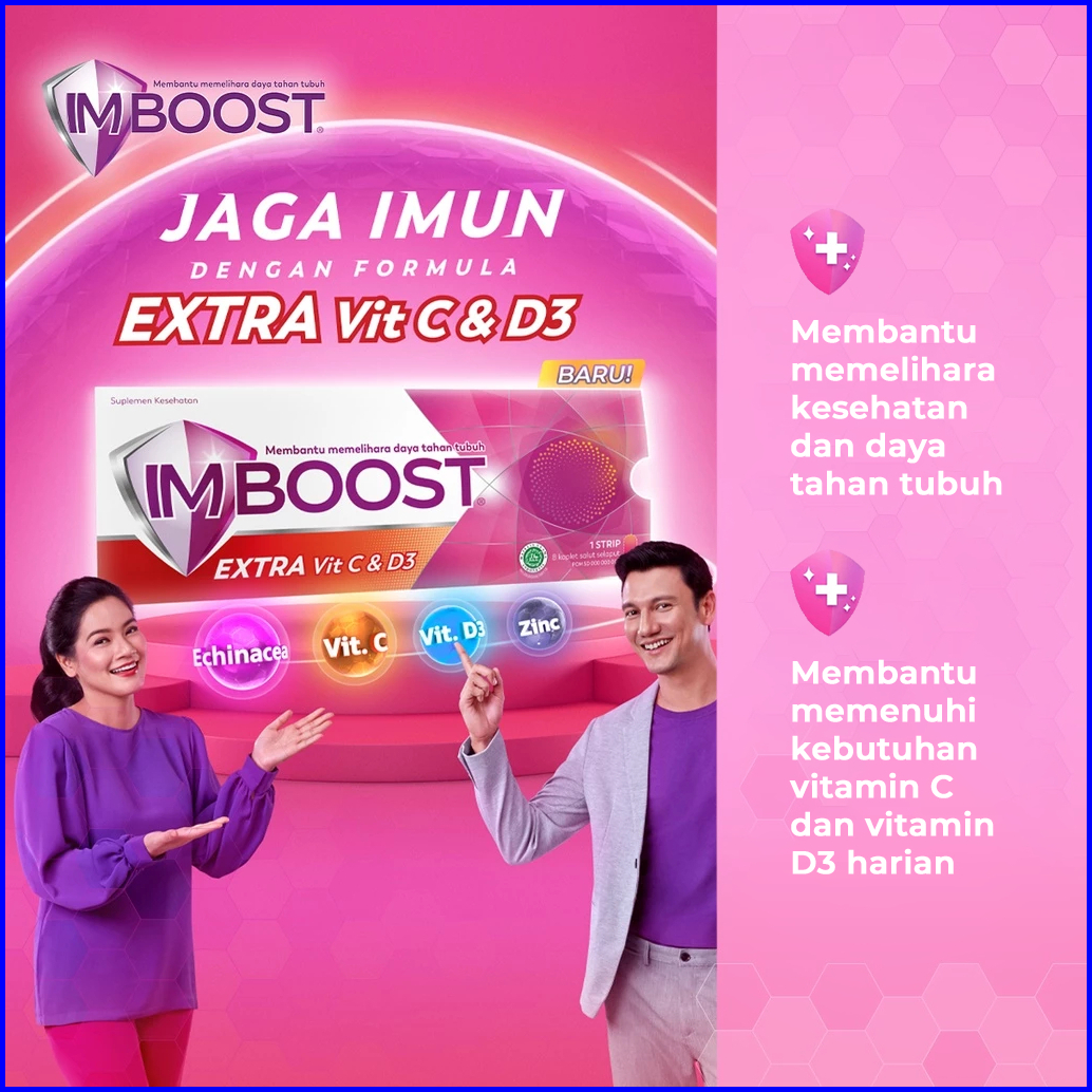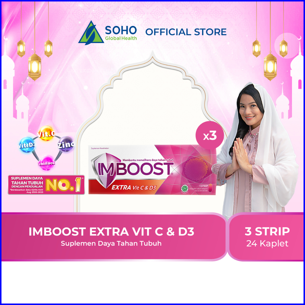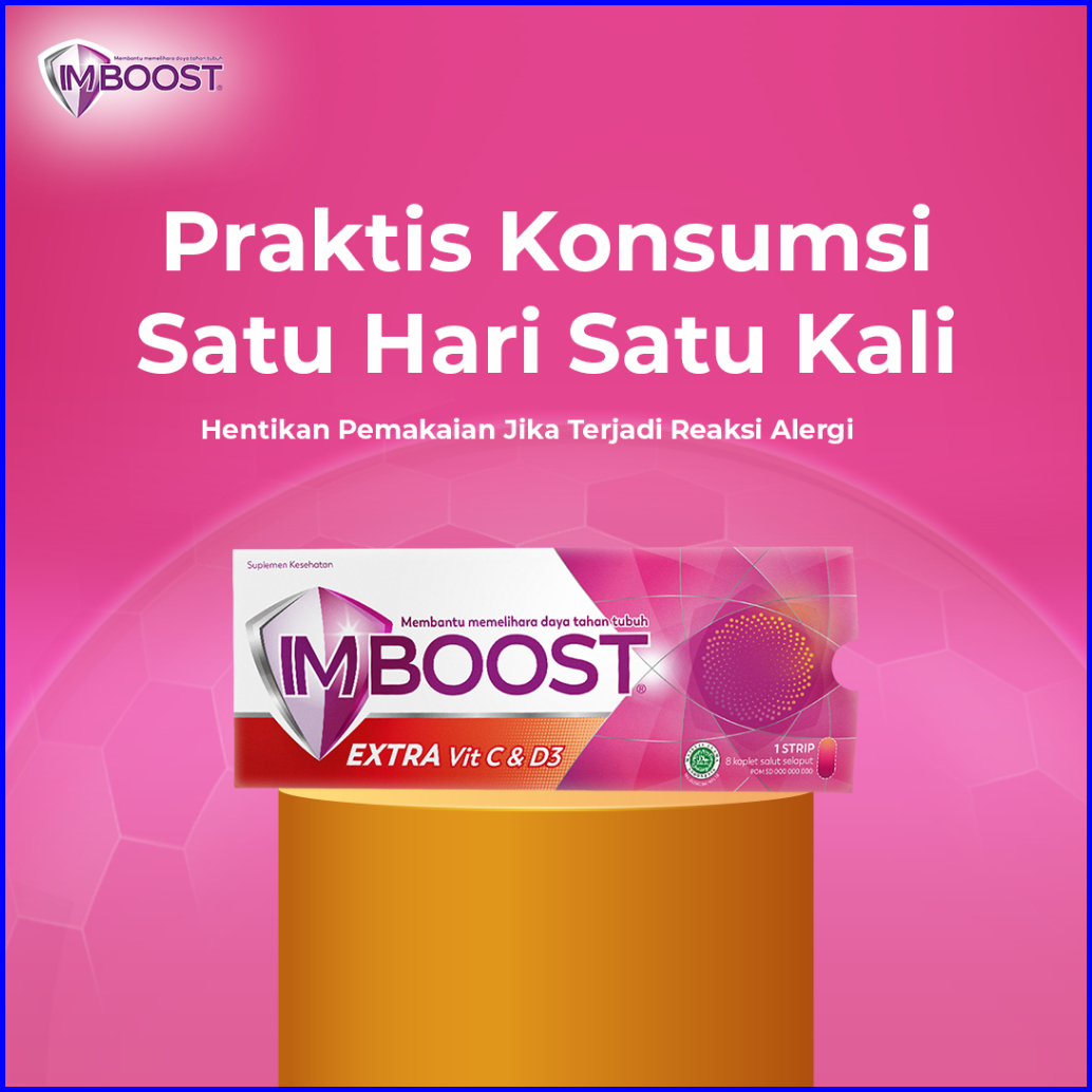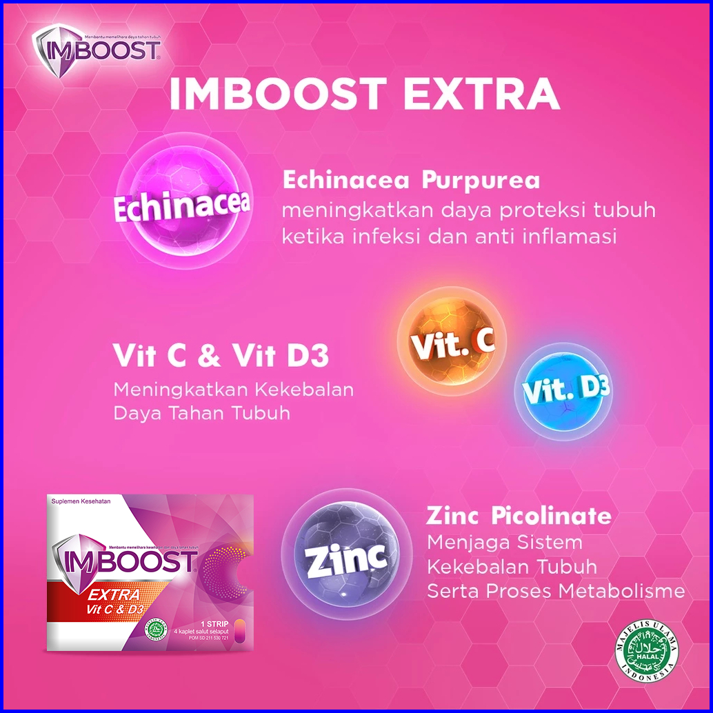 Imboost Extra Vit C D3 Suplemen Tablet Daya Tahan Tubuh Non-acidic Vitamin C Isi 3 Strip 8 Kaplet