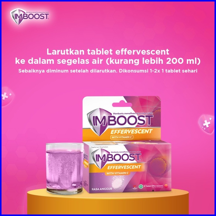 Imboost Effervescent With Vitamin C Rasa Anggur - 1 Tube 8 Tablet-paket Isi 2