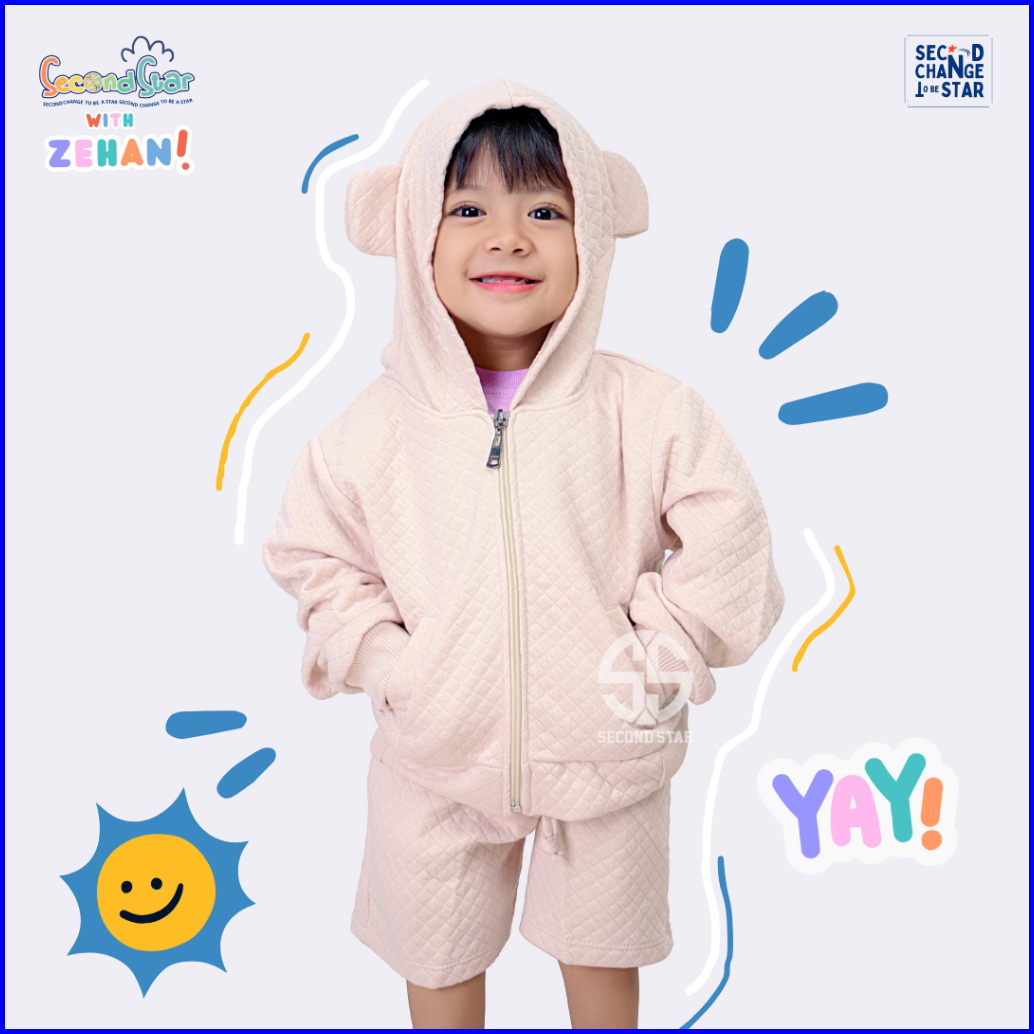 Second Star Jaket Hoodie Zipper Anak Luxebear Series Diamond Knitt Telinga 1-10 Tahun - Ssd01