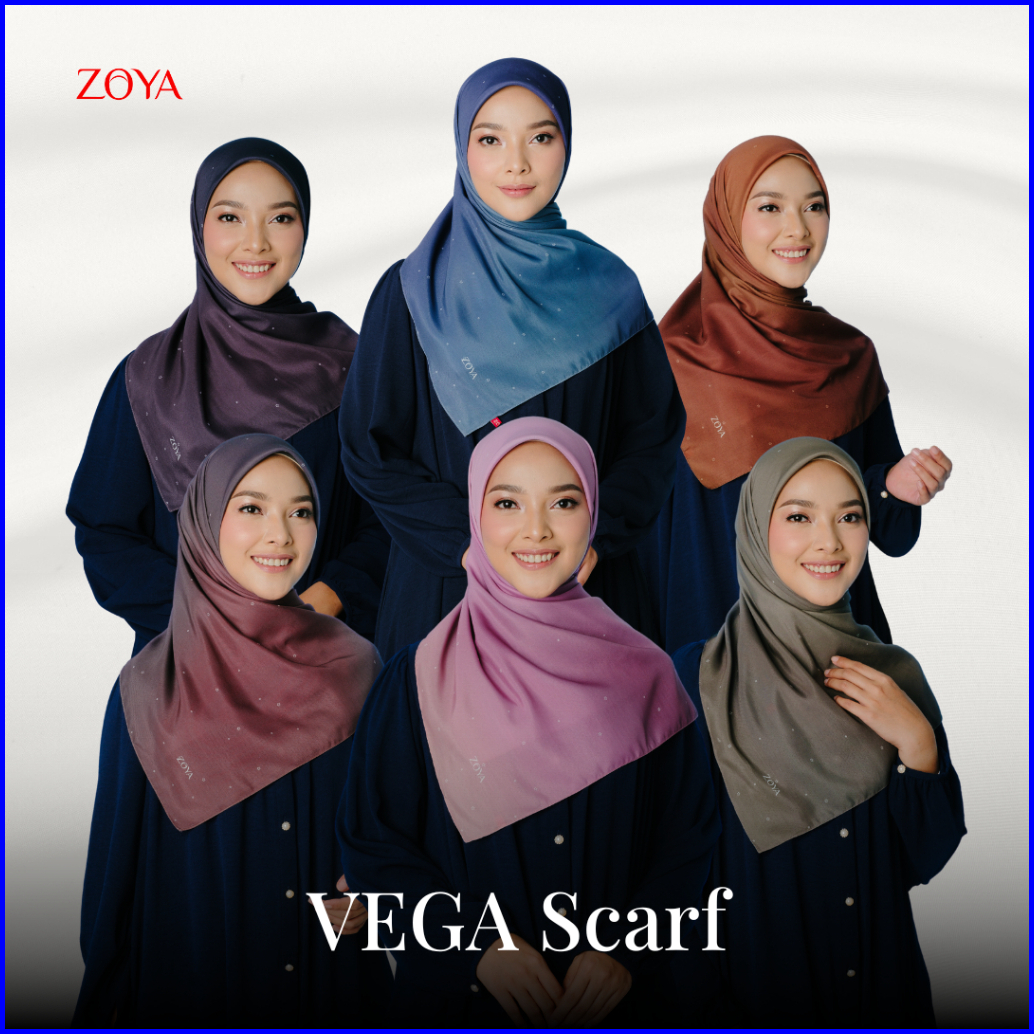 Zoya Vega Scarf - Kerudung Hijab Segiempat Motif With Pouch Ziplock - Bahan Poly Fine