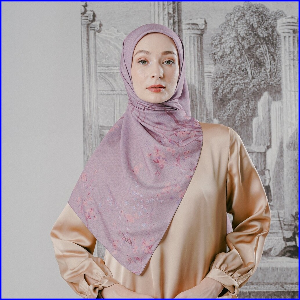 Zoya Michelia Scarf - Kerudung Hijab Segiempat Motif With Pouch - Bahan Poly Fine - Ukuran 110x110