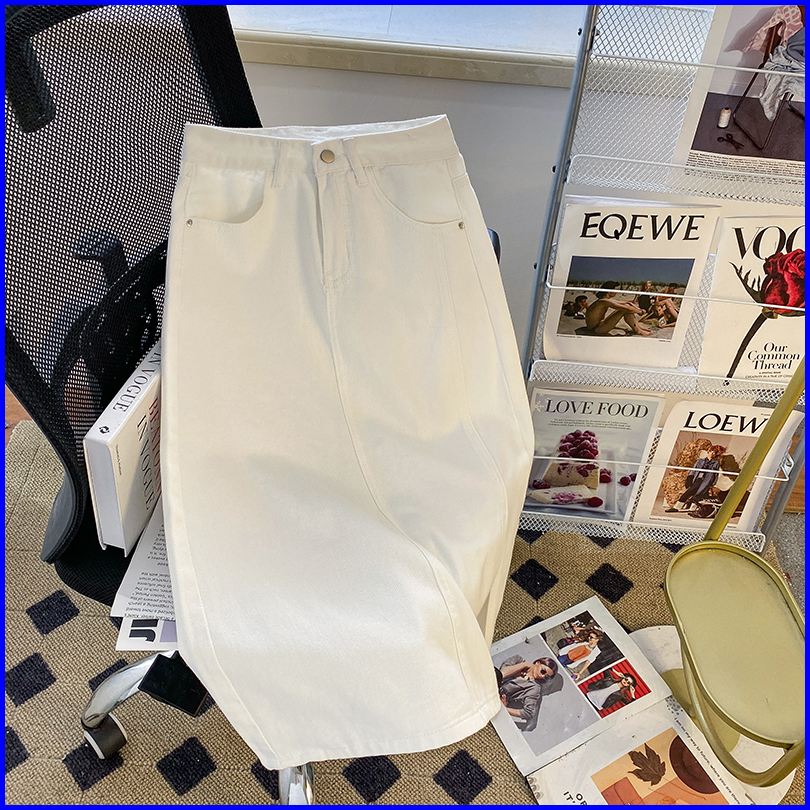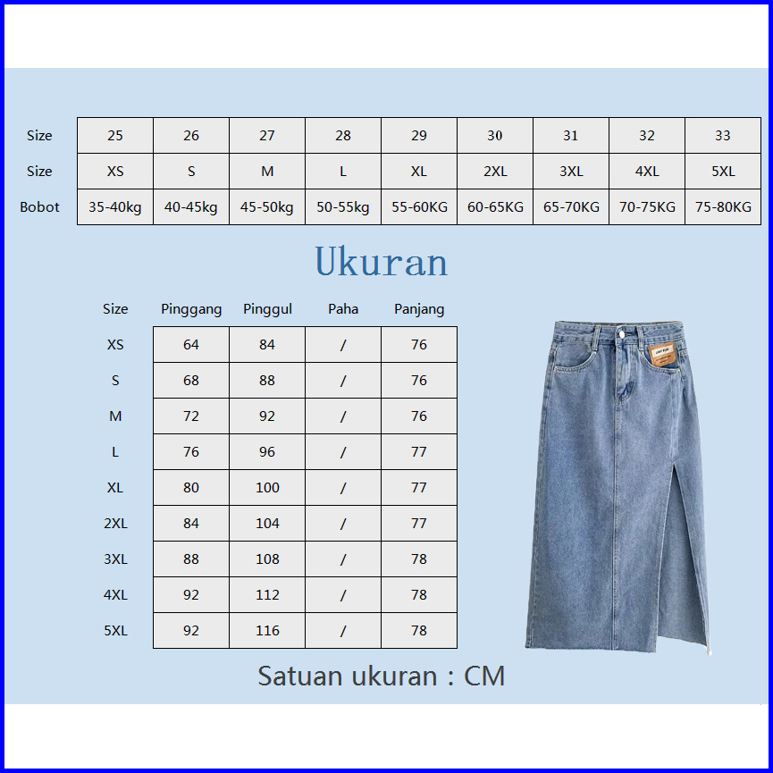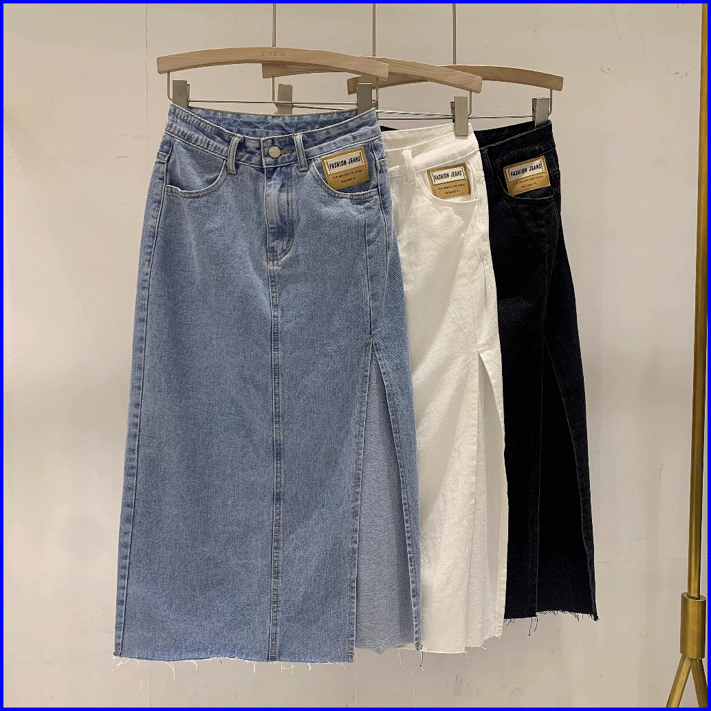 Keygirl Rok Jeans Panjiang Wanita Korean Style Rok Belah Samping Rok Denim Hightwaist Skirt Kekinian