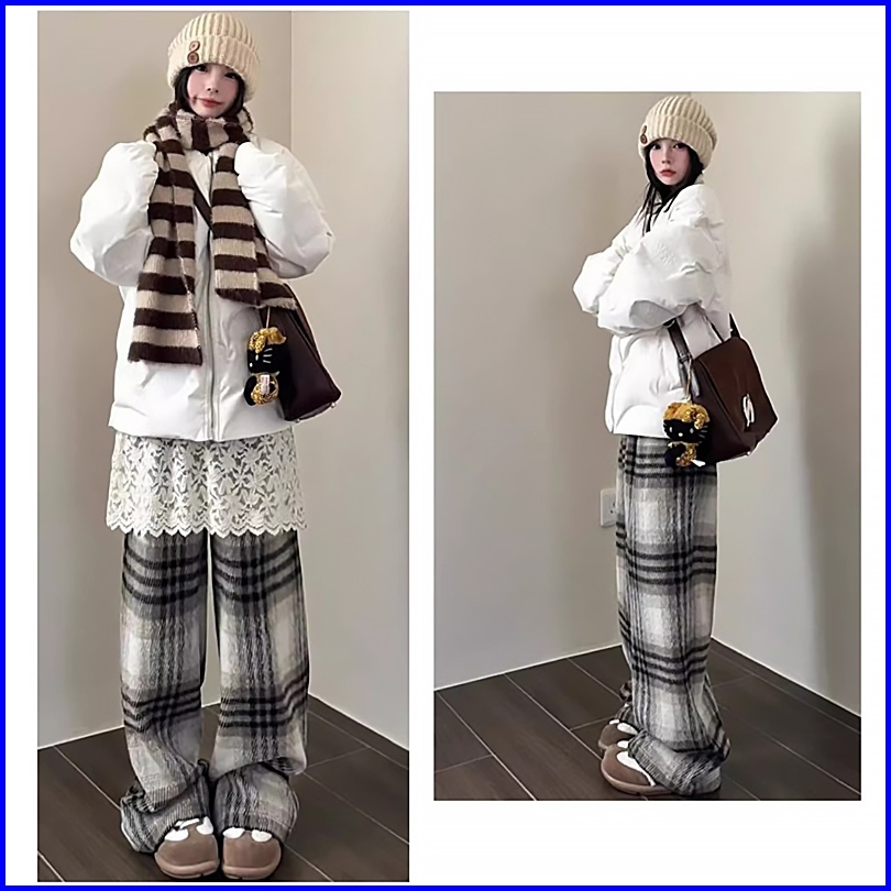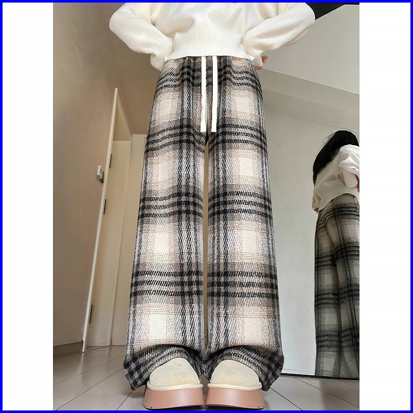Keygirl Celana Highwaist Celana Tartan Kotak Kotak Wanita Celana Panjang Kulot Korea Premium Jumbo Big Size Longpants Fa