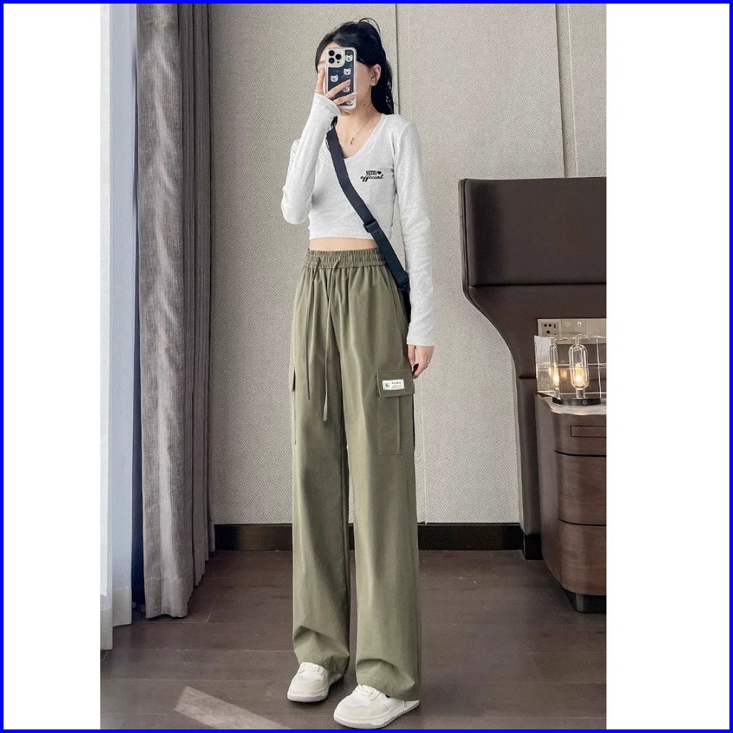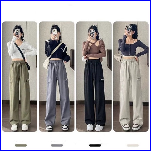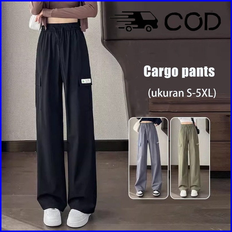 Keygirl Cargo Pants Wanita Highwaist Loose Korean Style Jumbo 5xl Celana Kargo Sutra Es Wanita Terbaru Kulot Panjang