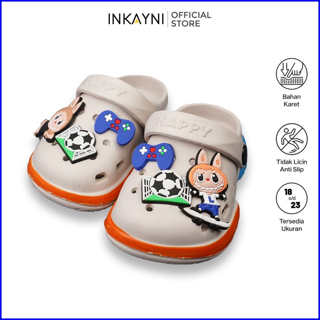 Inkayni Sendal Selop Anak Laki-laki Size 18-29 Anti Slip Motif Labubu Baim Kodok