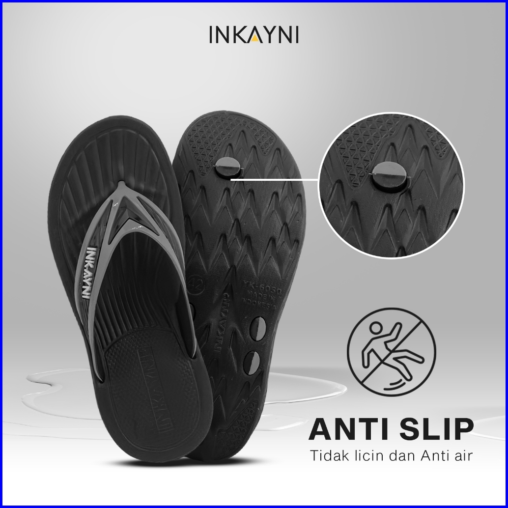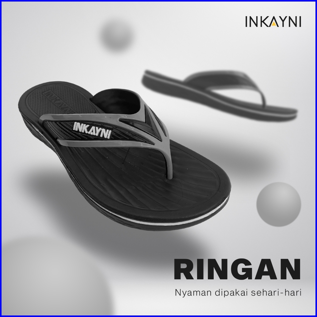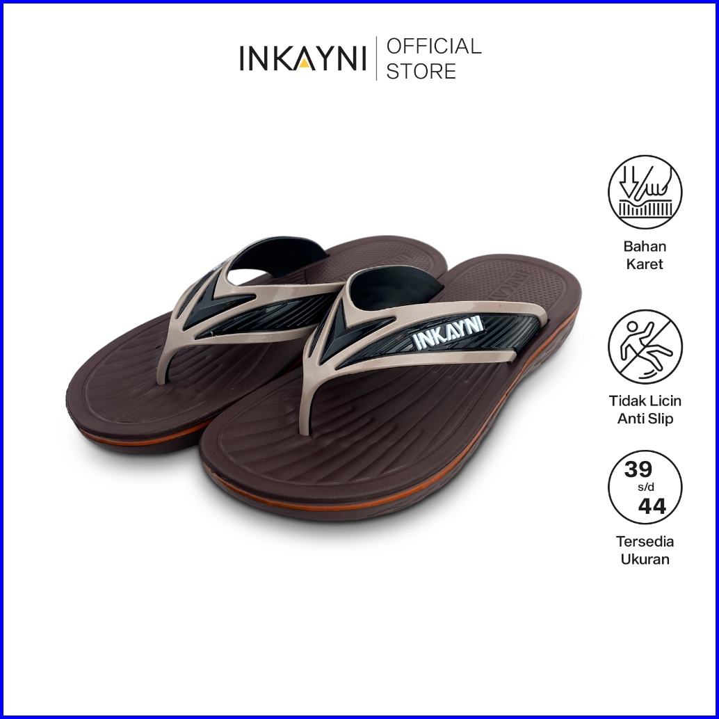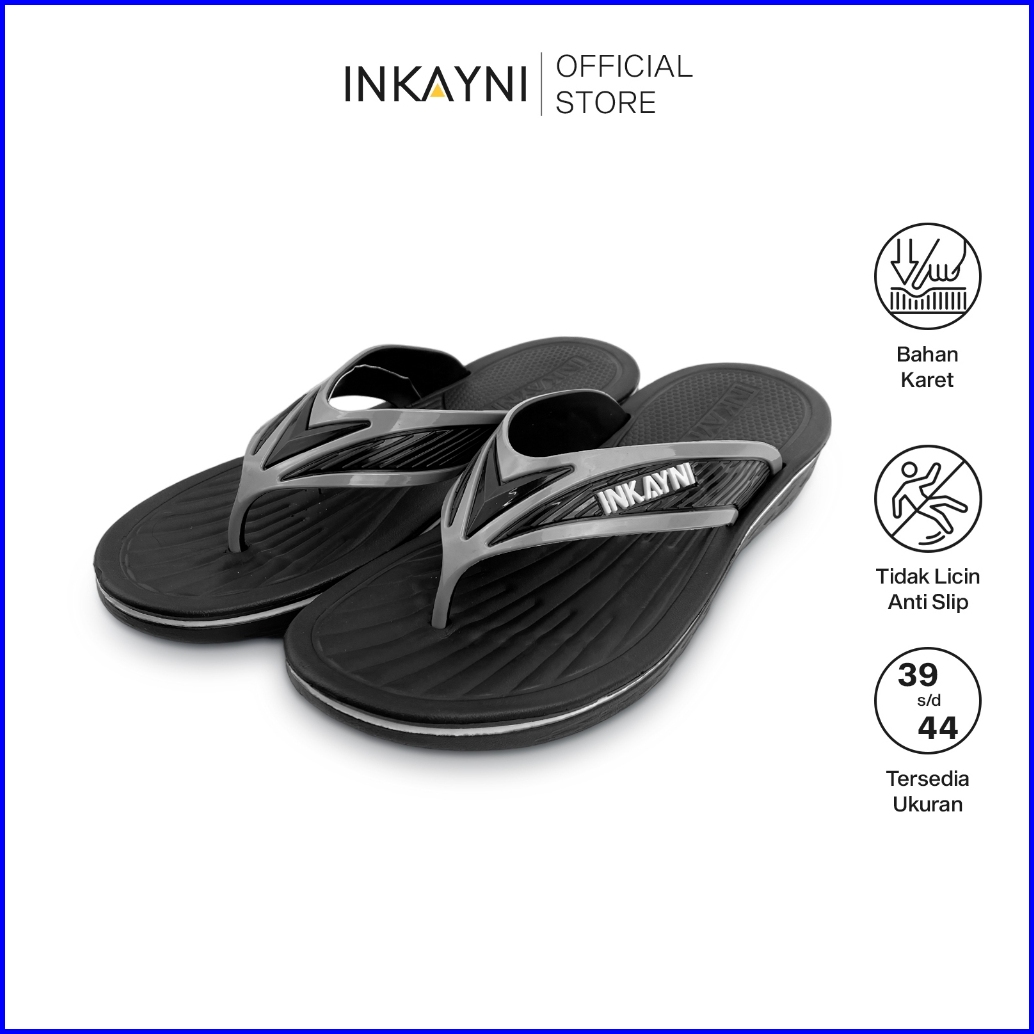 Inkayni Sandal Jepit Pria Size 39-44 Anti Slip Flip Flop Bahan Karet Empuk Flexible