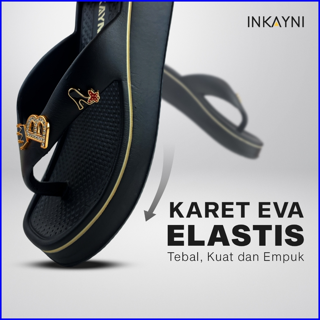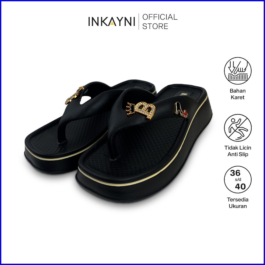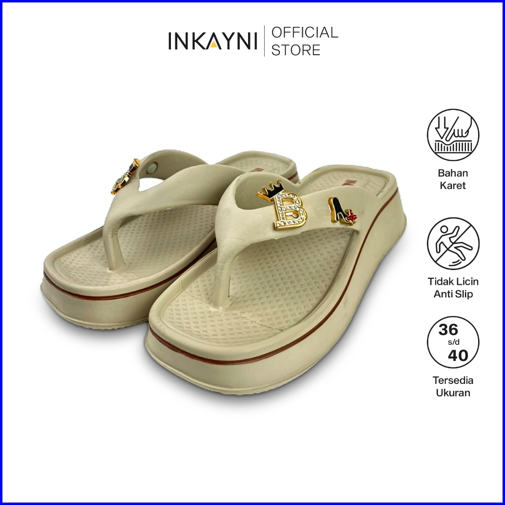 Inkayni Sandal Jepit Perempuan Size 36-40 Anti Slip Bahan Karet Wedges Motif Queen