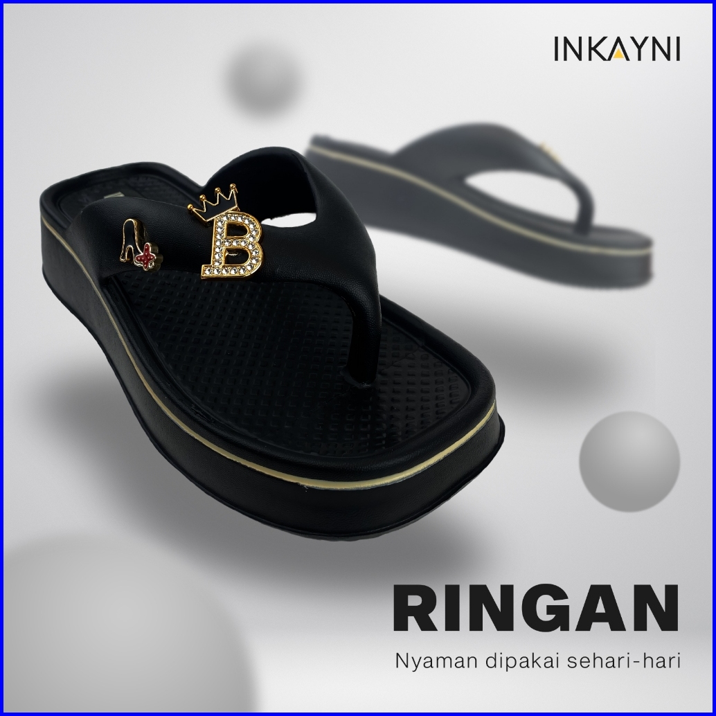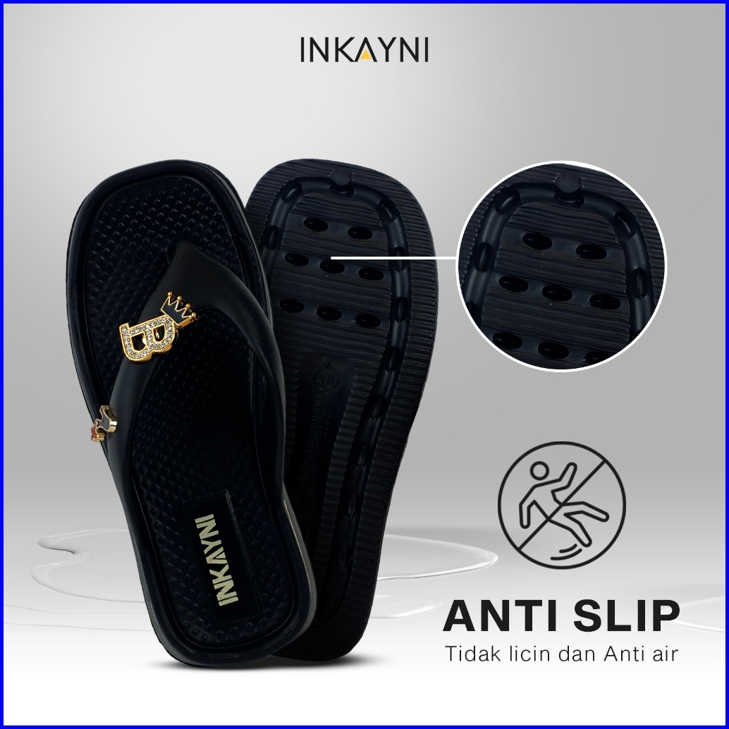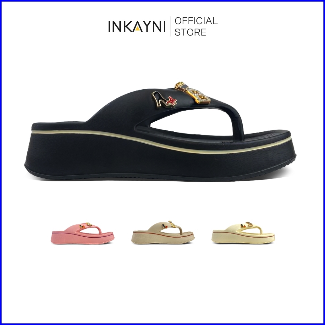 Inkayni Sandal Jepit Perempuan Size 36-40 Anti Slip Bahan Karet Wedges Motif Queen