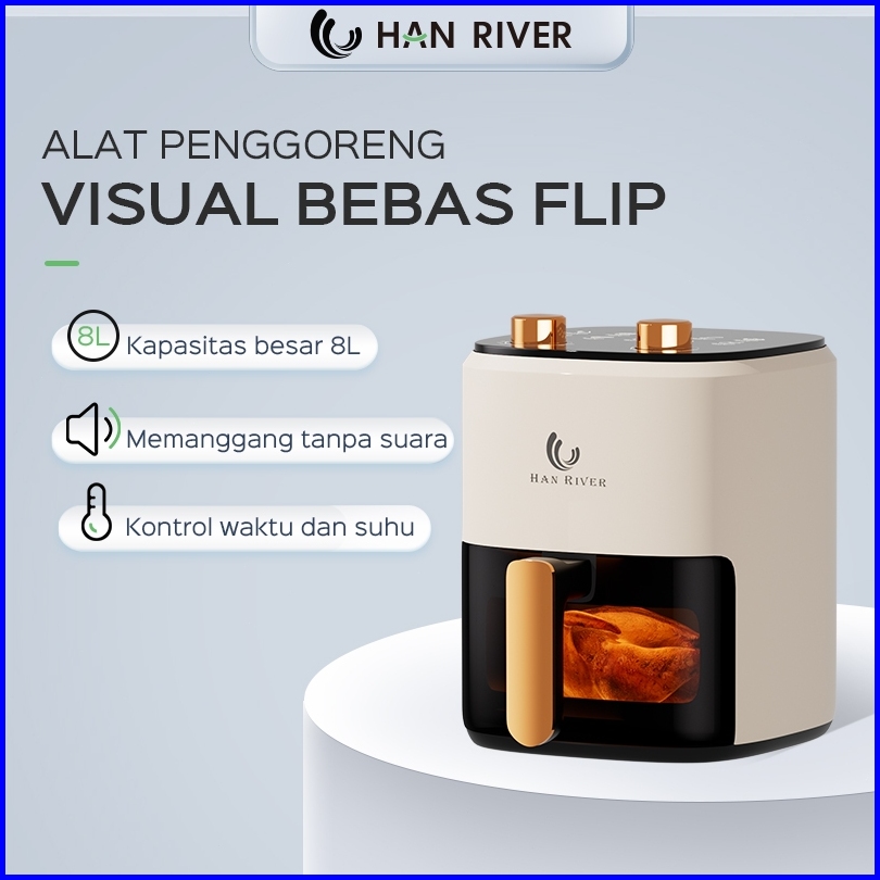 Han River Air Fryer 8l Air Fryer Multifungsi 650w Penggorengan Udara Visual