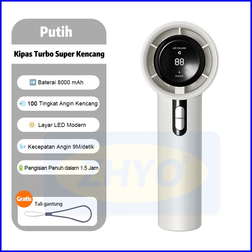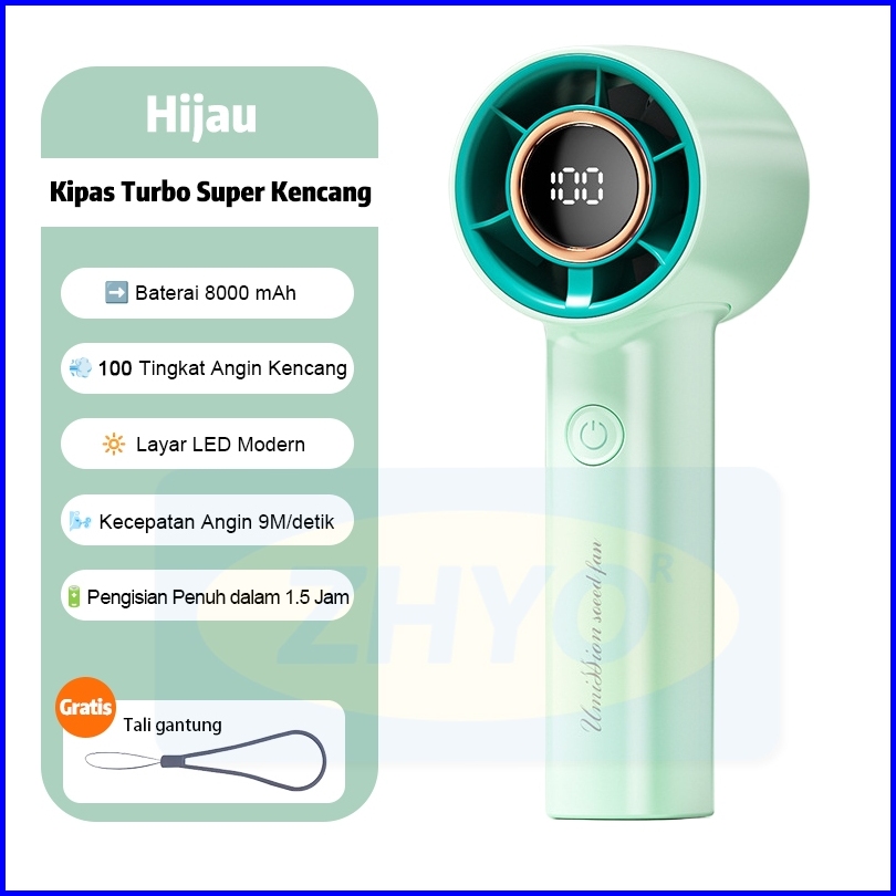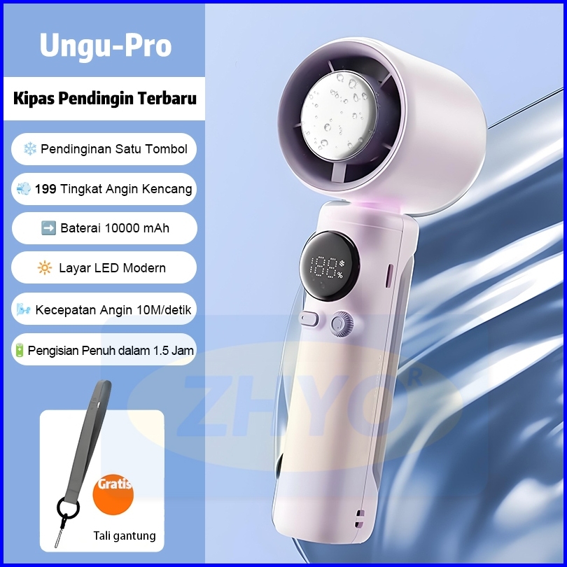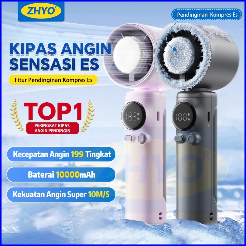 Zhyo 199 Tingkat Angin Kuat Kipas Angin Kecepatan Tinggi Dengan Pendingin Kompres Es Kipas Turbo Mini Portabel Pengisian