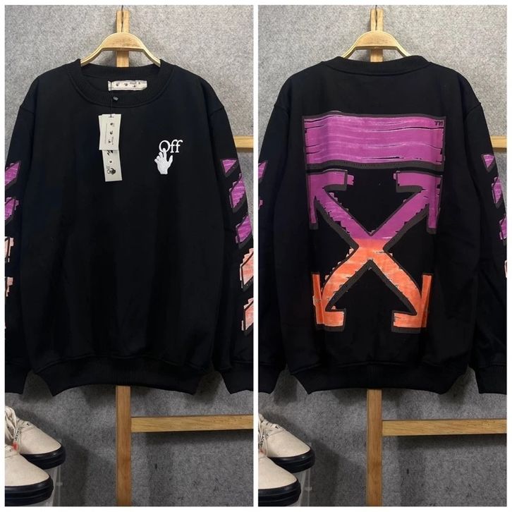 Jaket Pria/Wanita Sweater Crewneck OFF WHITE Purple Gradient Premium Fulltag Katun Fleece kekinian Berkualitas