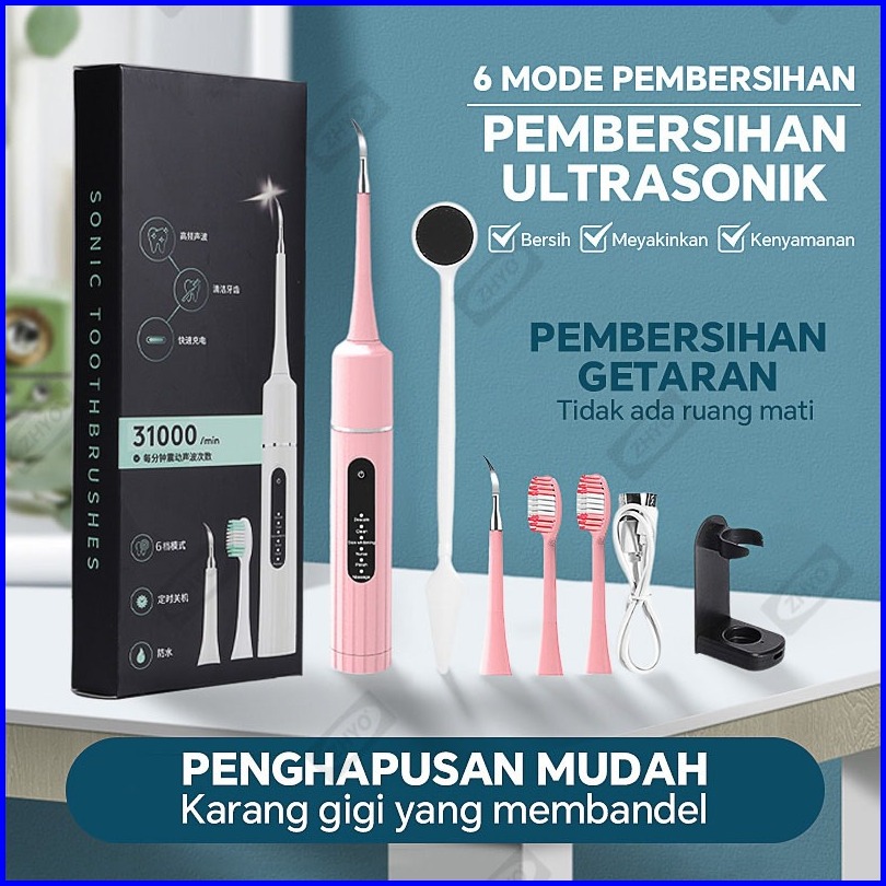 Zhyo 2 In 1 Pengukur Ultrasonik Scaler Listrik Portabel Sikat Gigi Elektrik Menghilangkan Karang Gigi Tartar Gigi Kuning