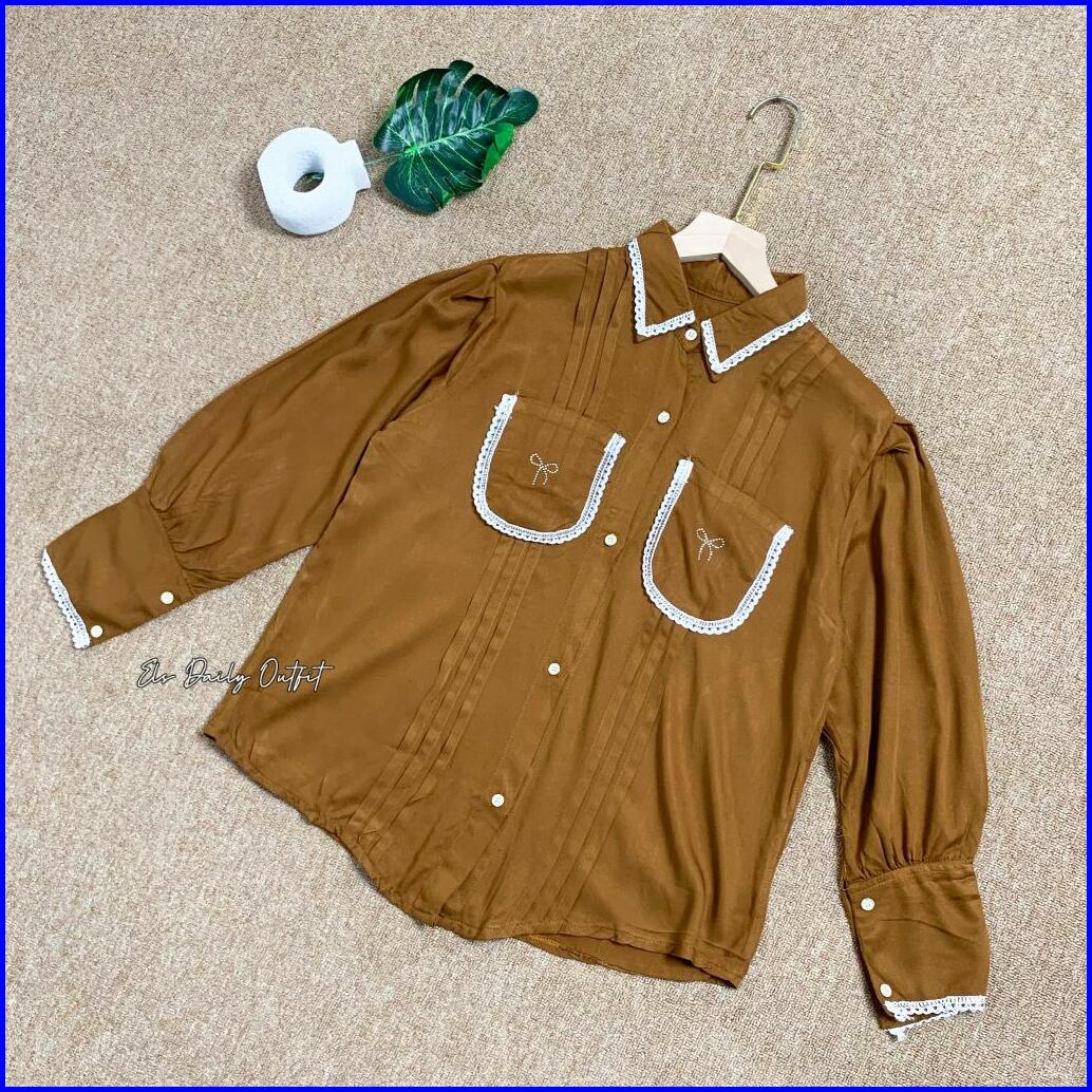 A Wear - Kemeja Wanita Talia Rayon Saku Dua Renda