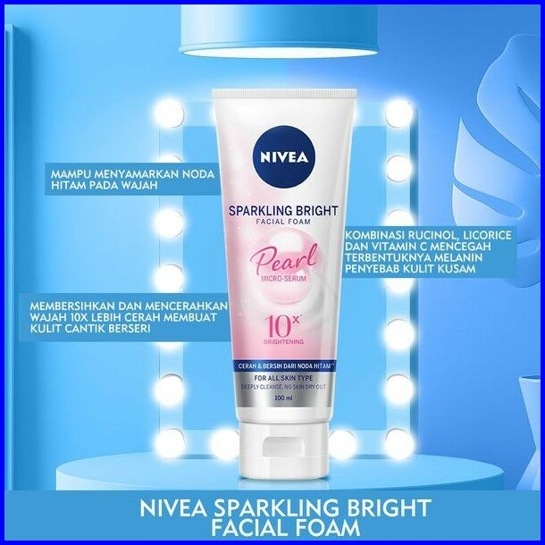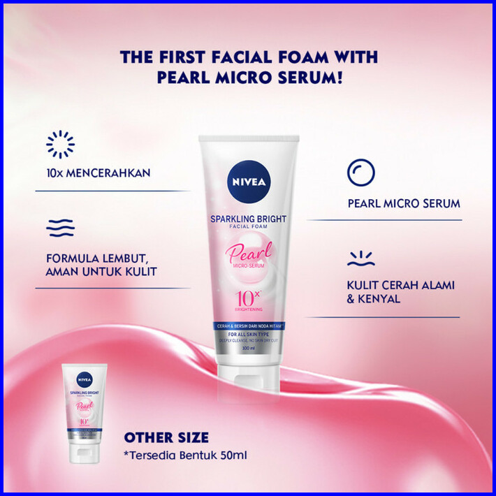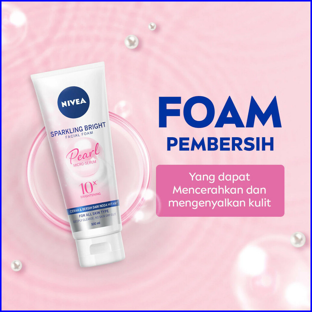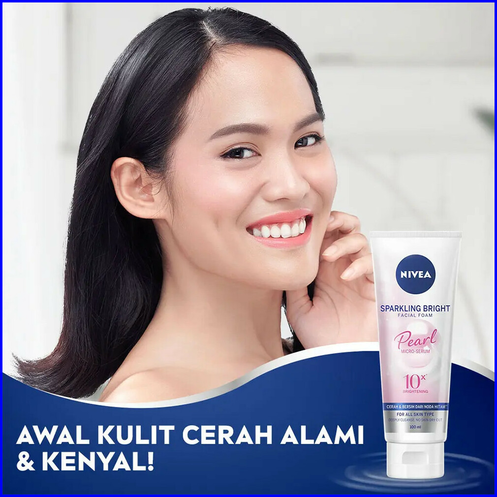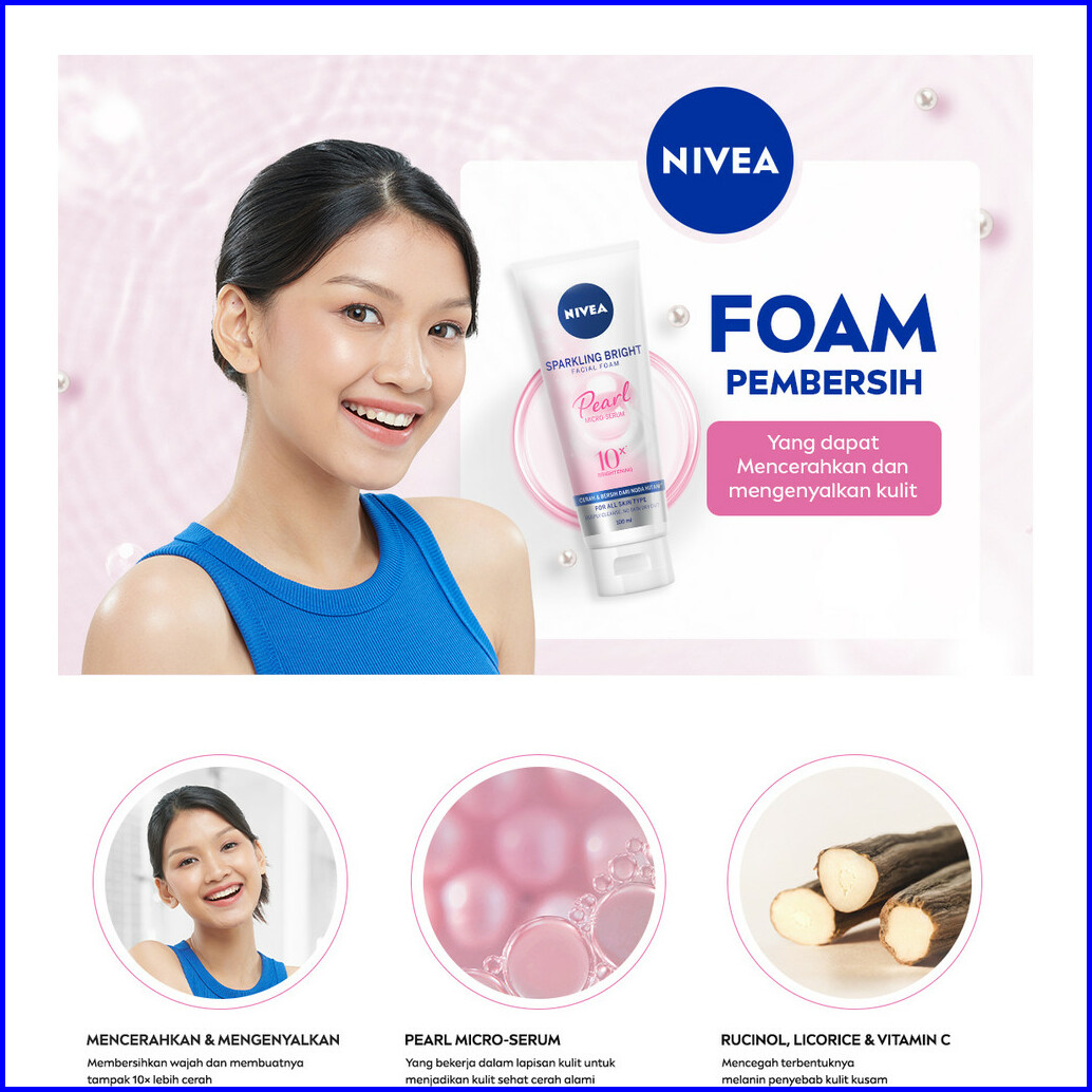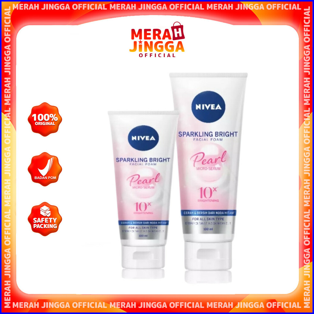 Nivea Sparkling Bright Kulit Cerah Kenyal Whitening Facial Foam 50ml - 100ml Merah Jingga