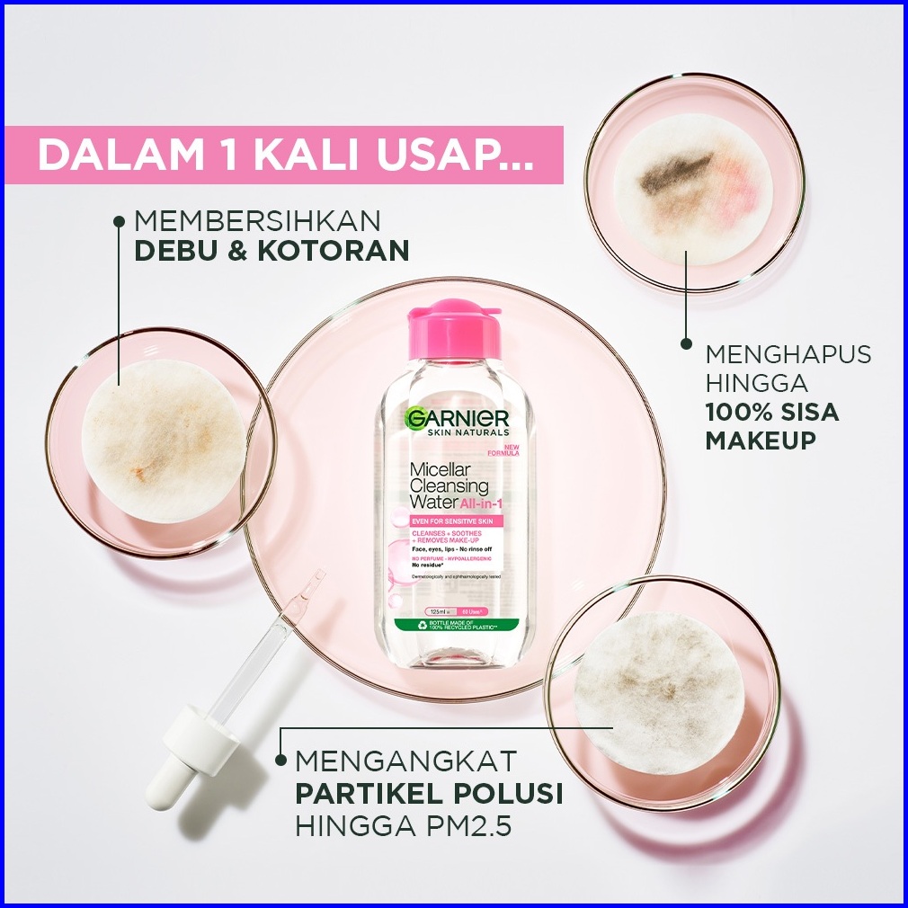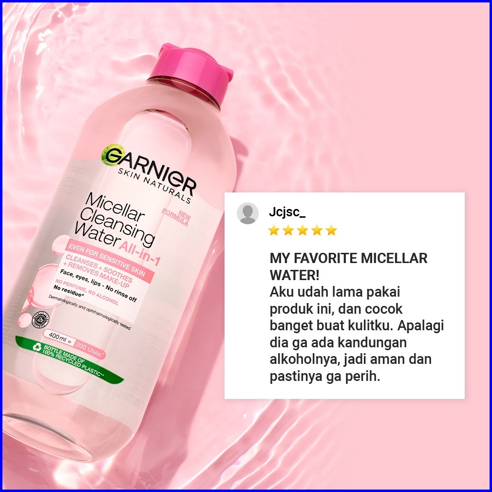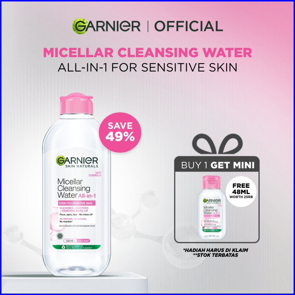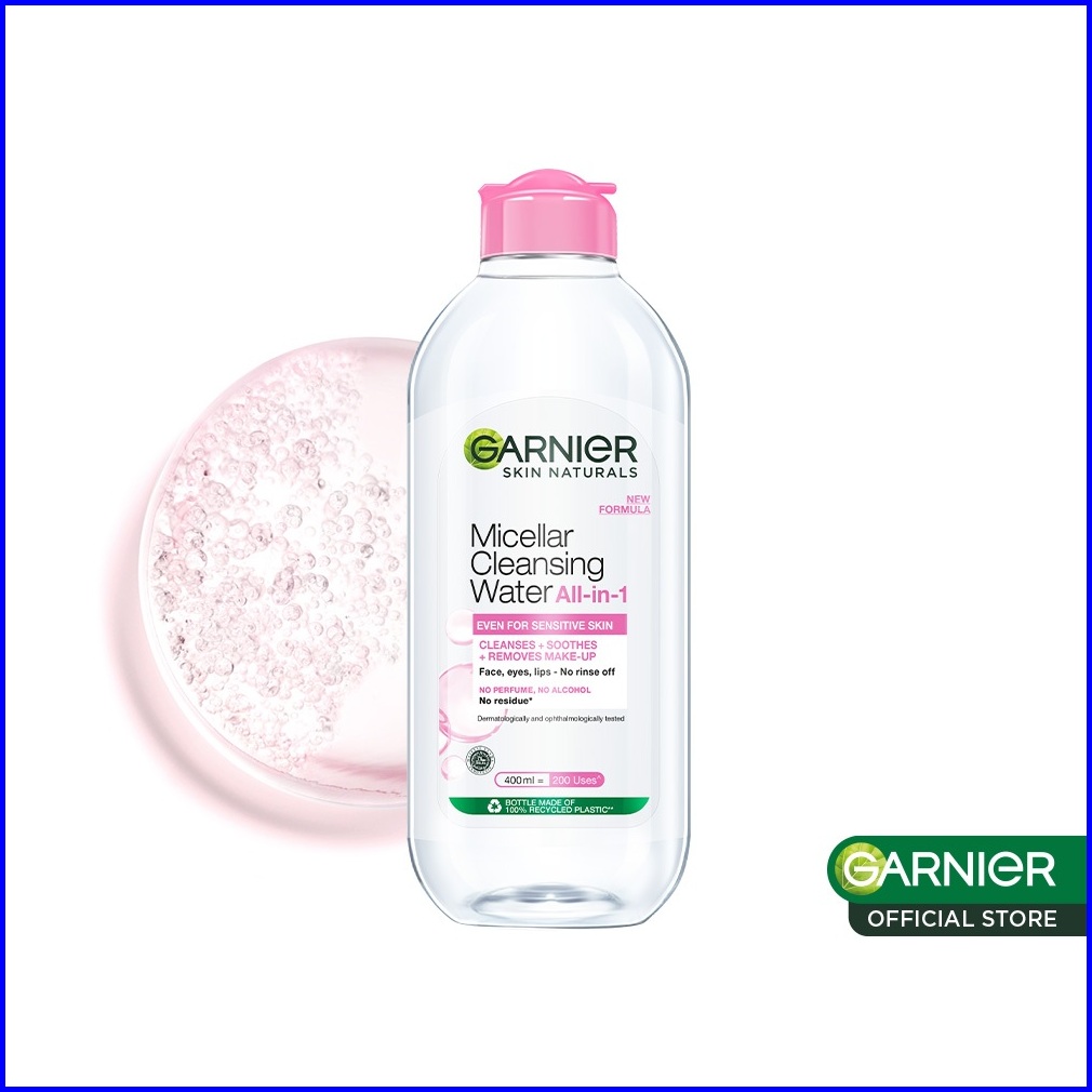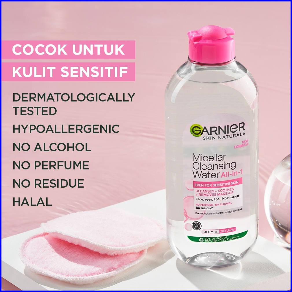 Garnier Micellar Cleansing Water Pink Skin Care - 400ml Pembersih Wajah Make Up Untuk Kulit Sensitif Gentle Cleanser