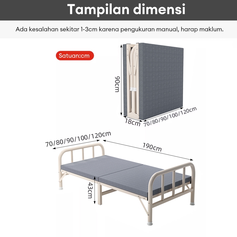 Ranjang Lipat Besi 190x120cm Tempat Tidur Lipat Portable Kasur Lipat Tebal 10 CM Folding Bed Sudah Dirakit