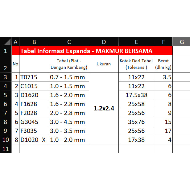 Plat Expanded Metal 120x240 Cm Plat Expanded Mesh Plat Pagar Tralis Expanda T0715 C1015 D1620 F1628 F2028 G3045 F3045