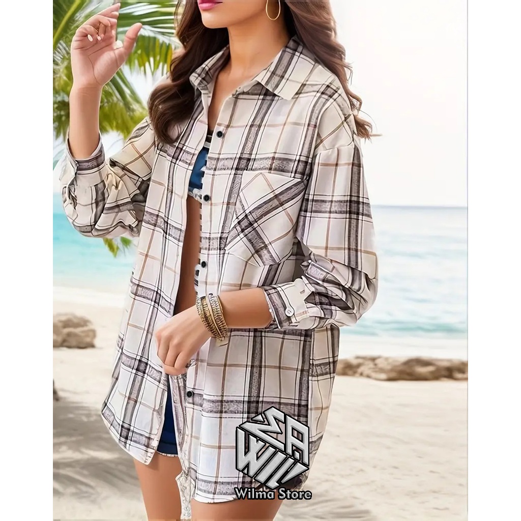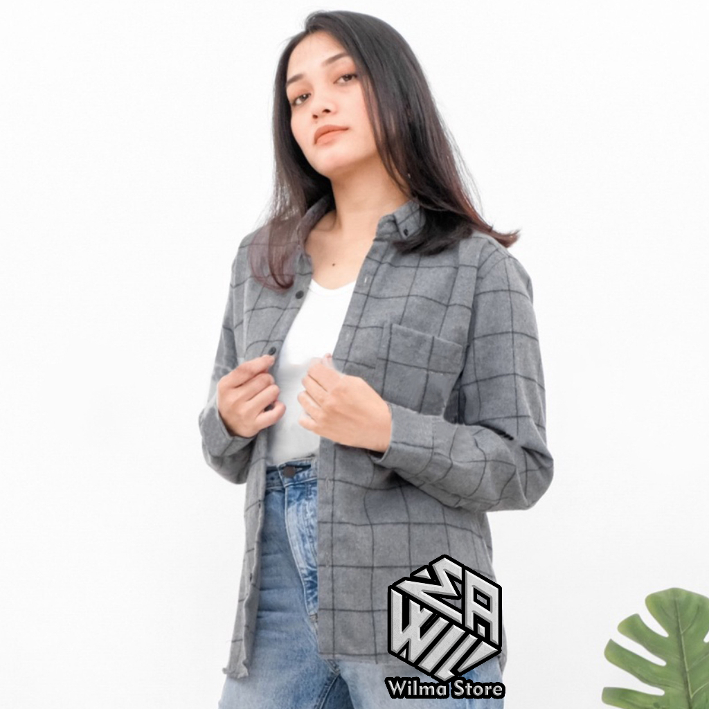 KEMEJA KOTAK KOTAK LENGAN PANJANG WANITA / FLANEL WANITA MODEL KOREA / ATASAN KEMEJA REGULER WANITA