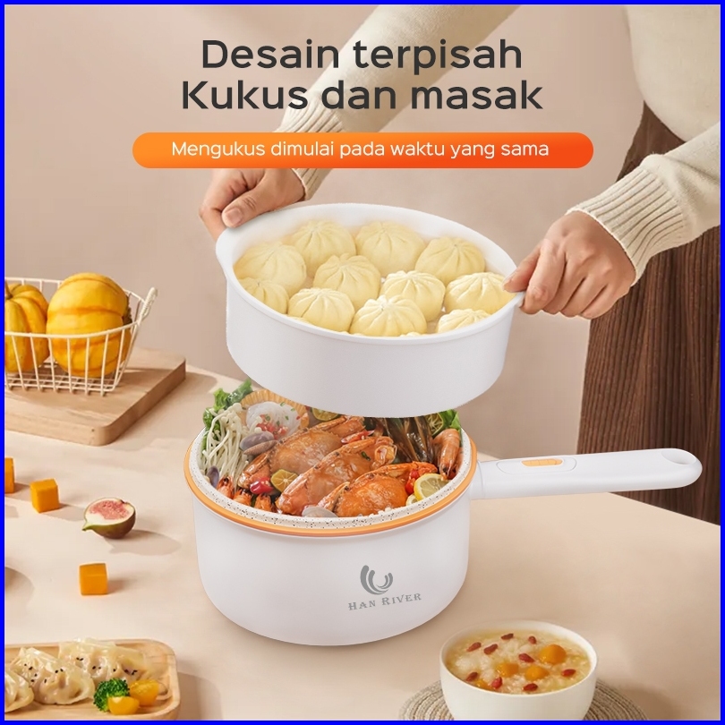 Han River Panci Listrik Hrdhg01 Fry Pan Electric 2in1 2l Panci Listrik Multifungsi Panci Listrik Kecil-putih
