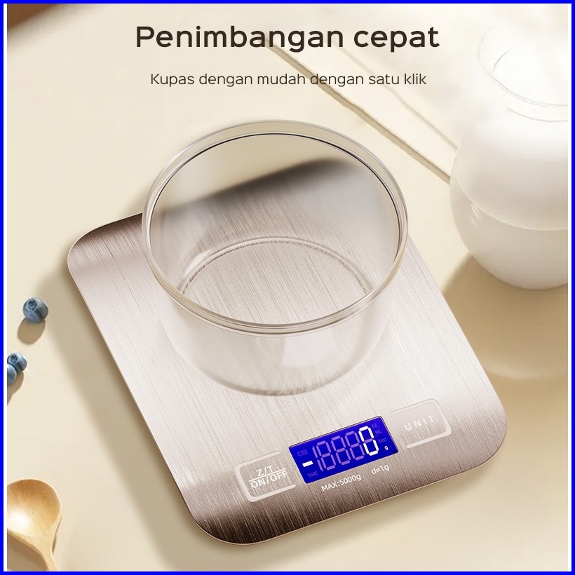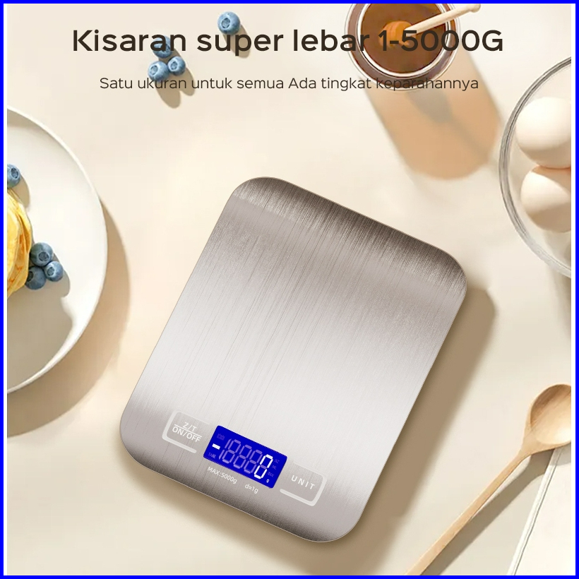 Han River Timbangan Digital Dapur 5kg Berbahan Stainless Steel Lcd Display