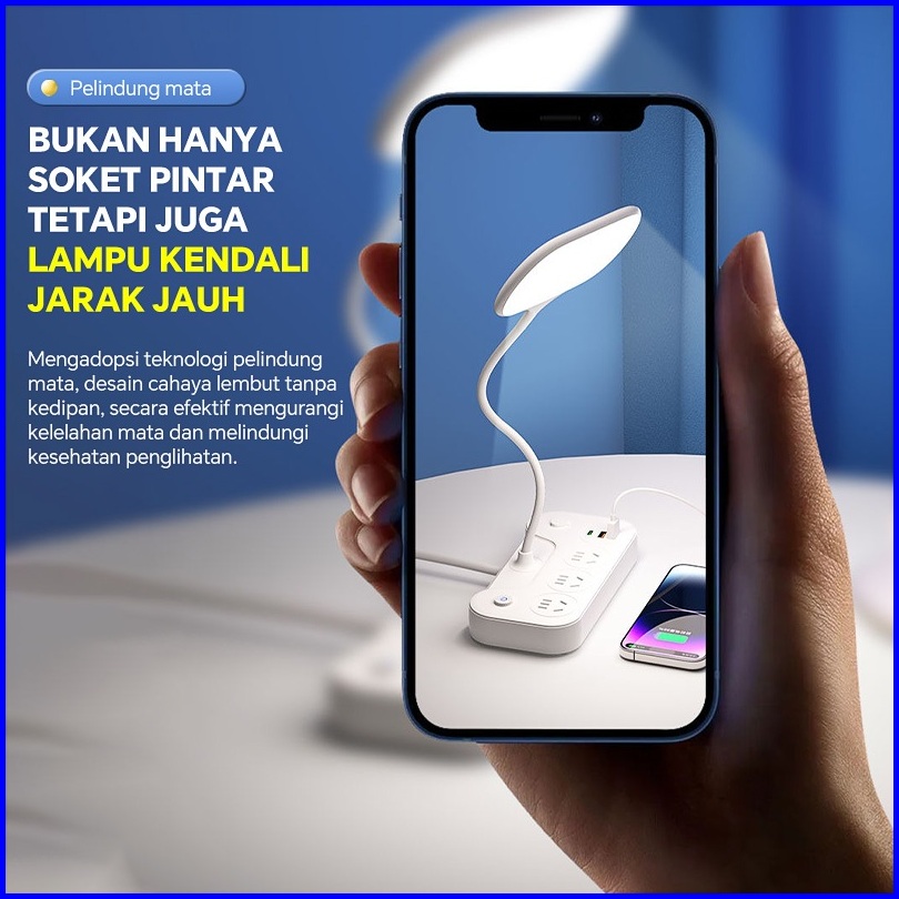 Zhyo Lampu Meja 2-in-1 Dengan Stopkontak Lampu Meja 3 Suhu Warna Dapat Disesuaikan Led Pelindung Mata Belajar Kerja Lamp