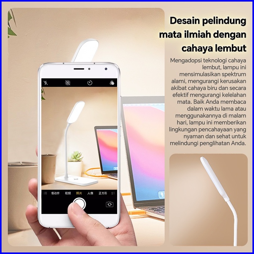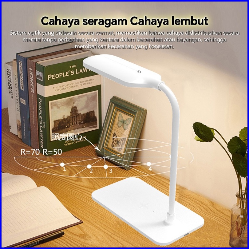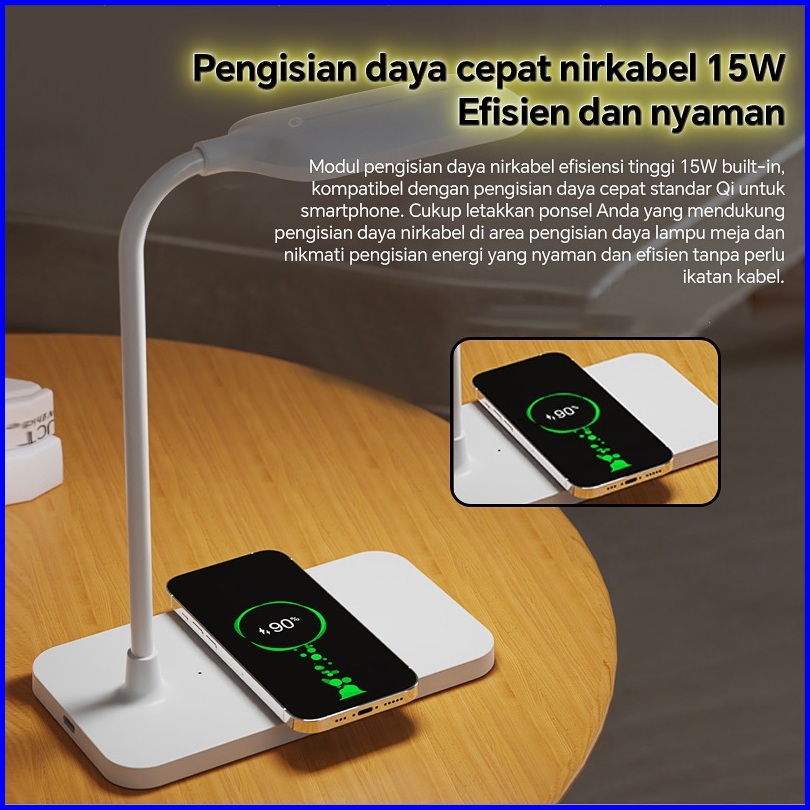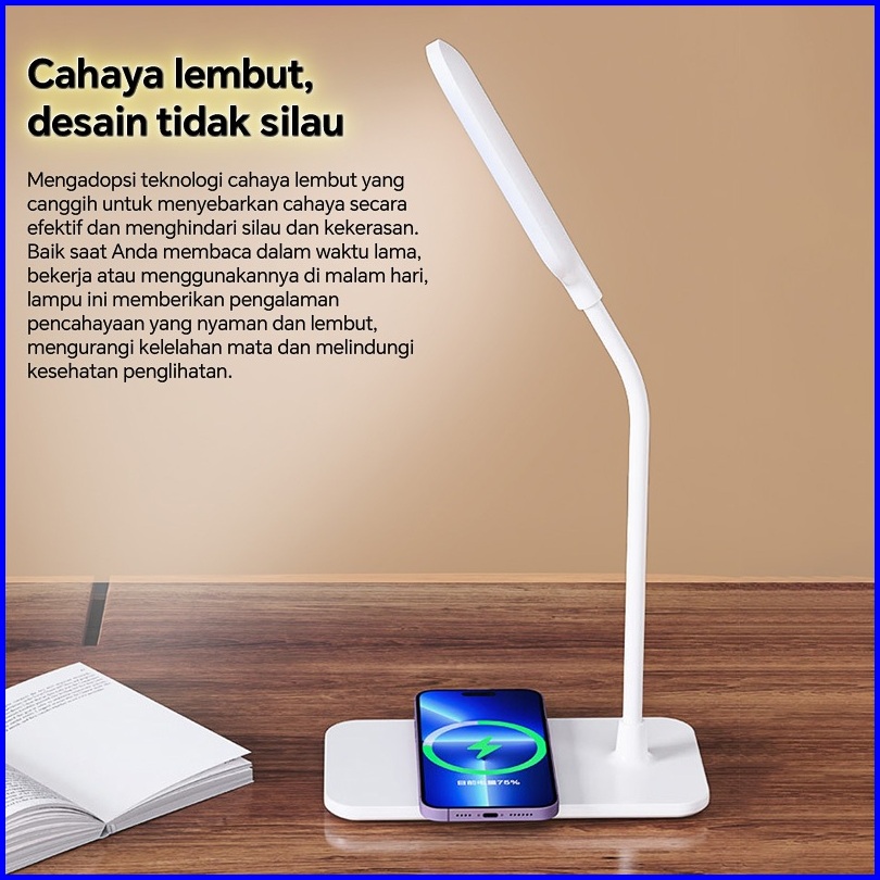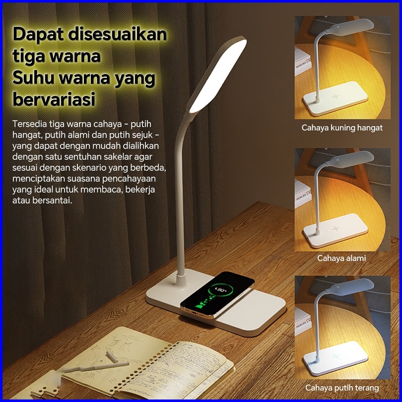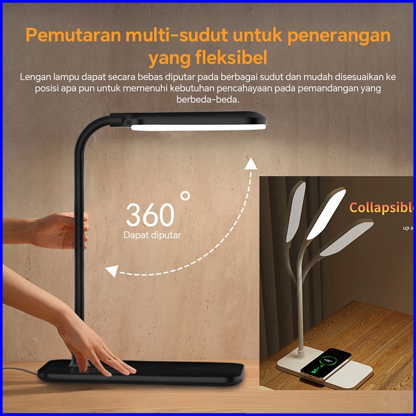 Lampu Meja Led 3 Warna Dapat Dilipat Pengisian Daya Nirkabel Untuk Ponsel Lampu Belajar Lampu Bacaan Meja