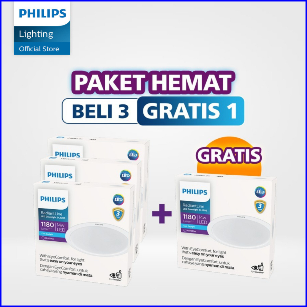 Beli 3 Gratis 1 Philips Lampu Radiantline Downlight Dl190b D150 14w 65k Putih