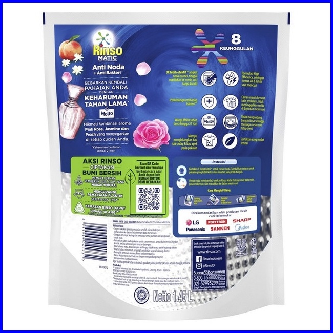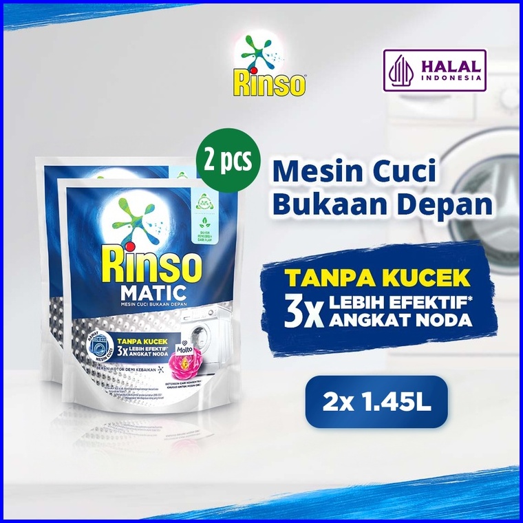 Rinso Detergent Cair Konsentrat Deterjen Matic Mesin Cuci Bukaan Depan 1.45 L X2