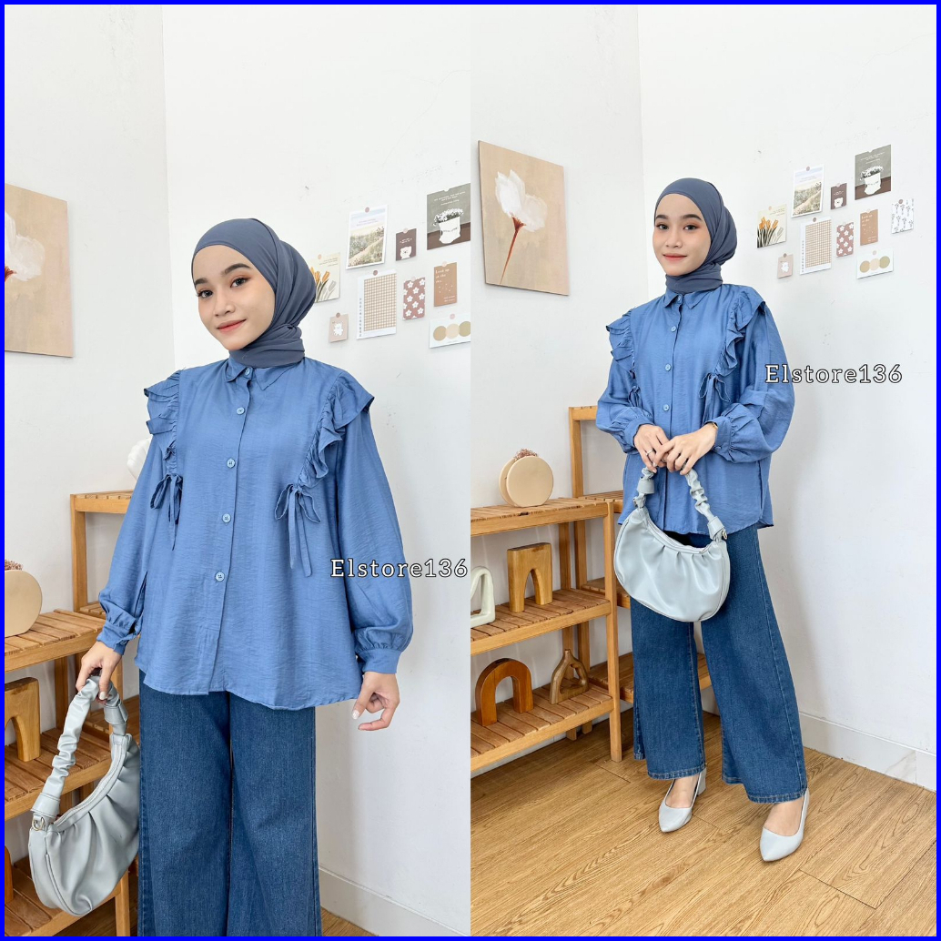 A Wear - Inara Blouse Atasan Wanita Bahan Polo Linen Ruffle Full Kancing