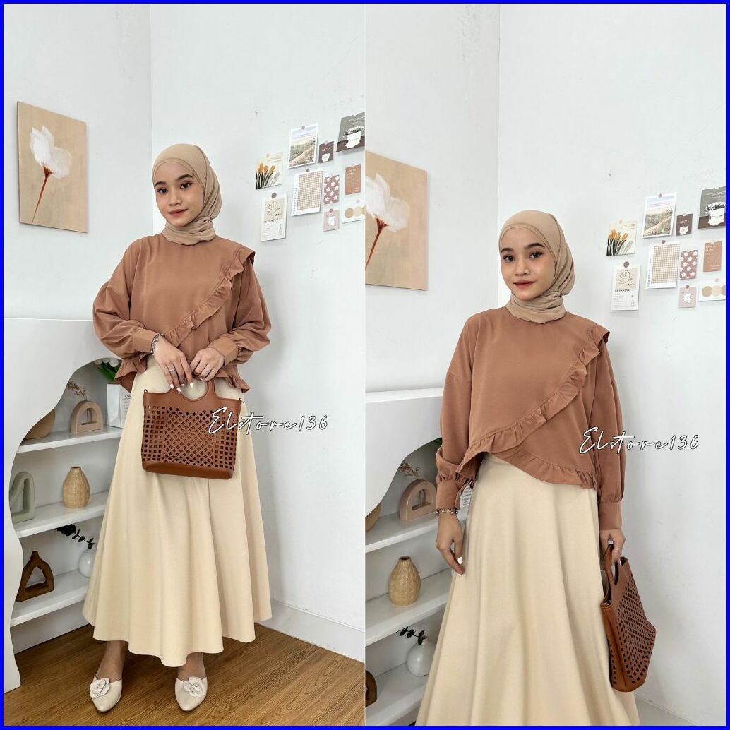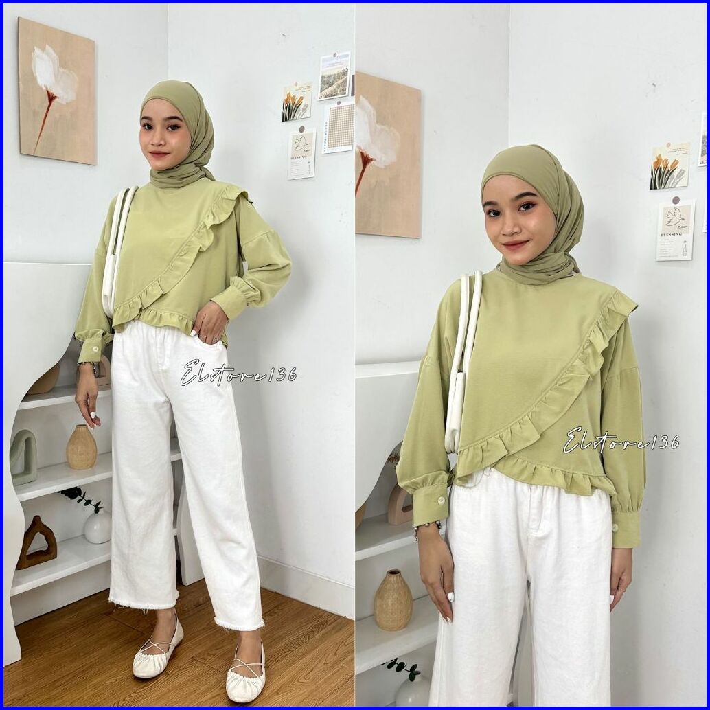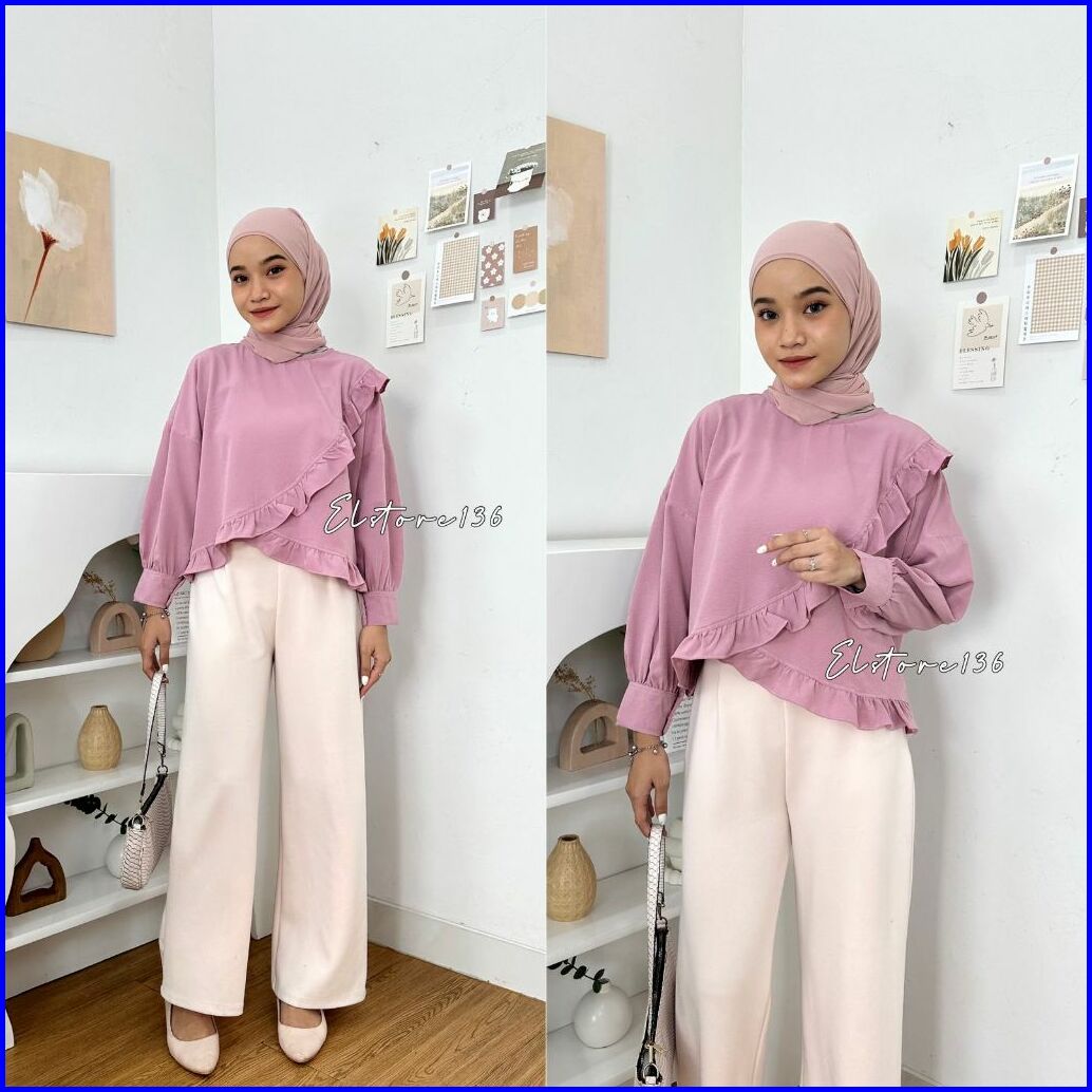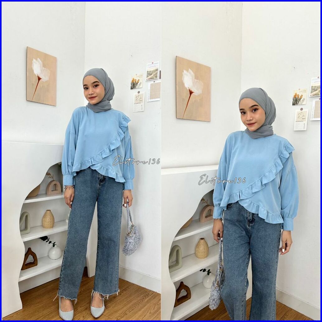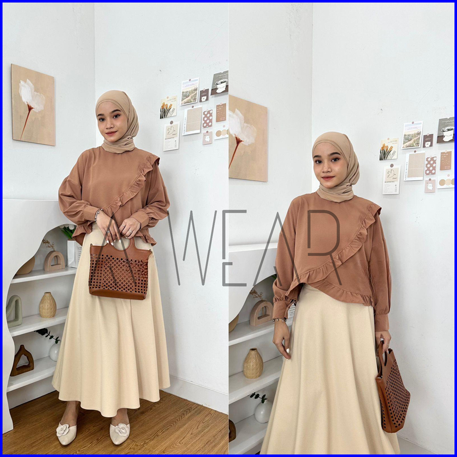 A Wear - Anaya Blouse Bahan Crinkle Shiny Atasan Wanita Ruffle Depan