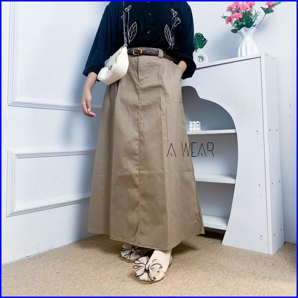 A Wear - Elnara Skirt Maxi Katun Twill Rok Cassual Wanita Remaja Dewasa