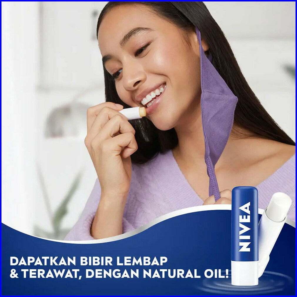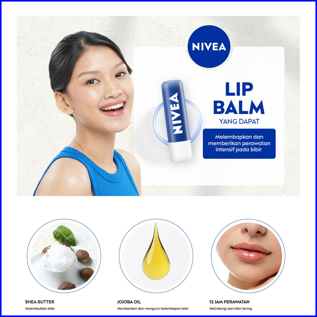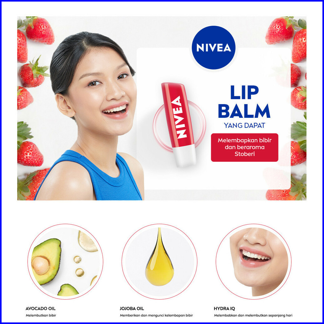Nivea Caring Lip Balm Strawberry Shine 4.8gr 24h Melt In Moisture Merah Jingga