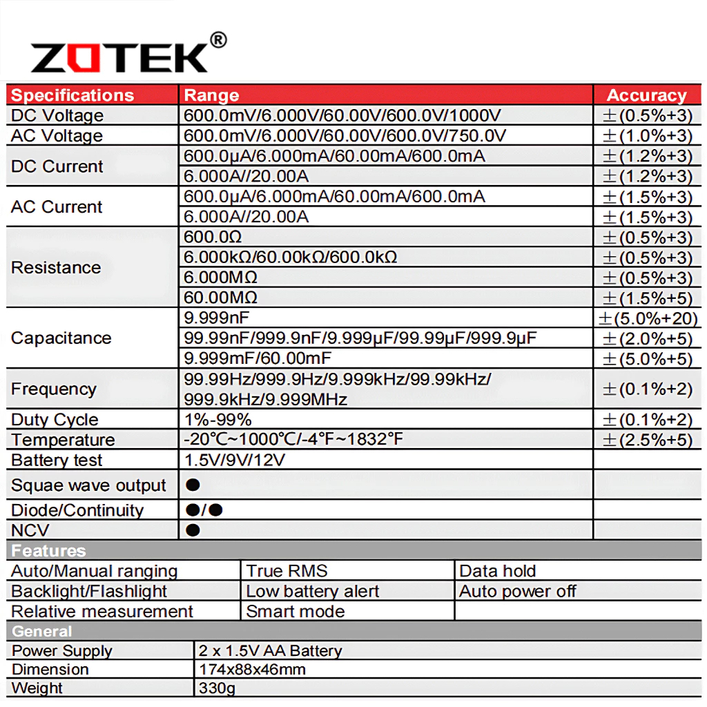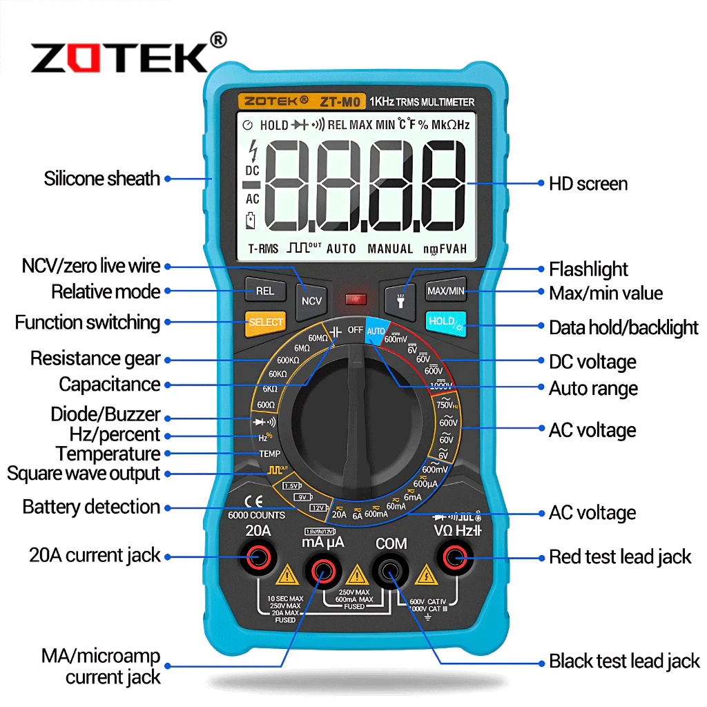 Zotek ZT-M0 Dual Mode True RMS Digital Multimeter AC and DC Voltage Current Temperature Original