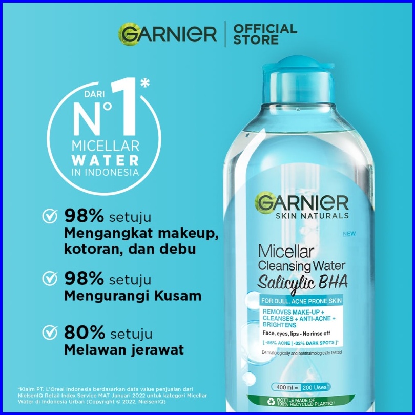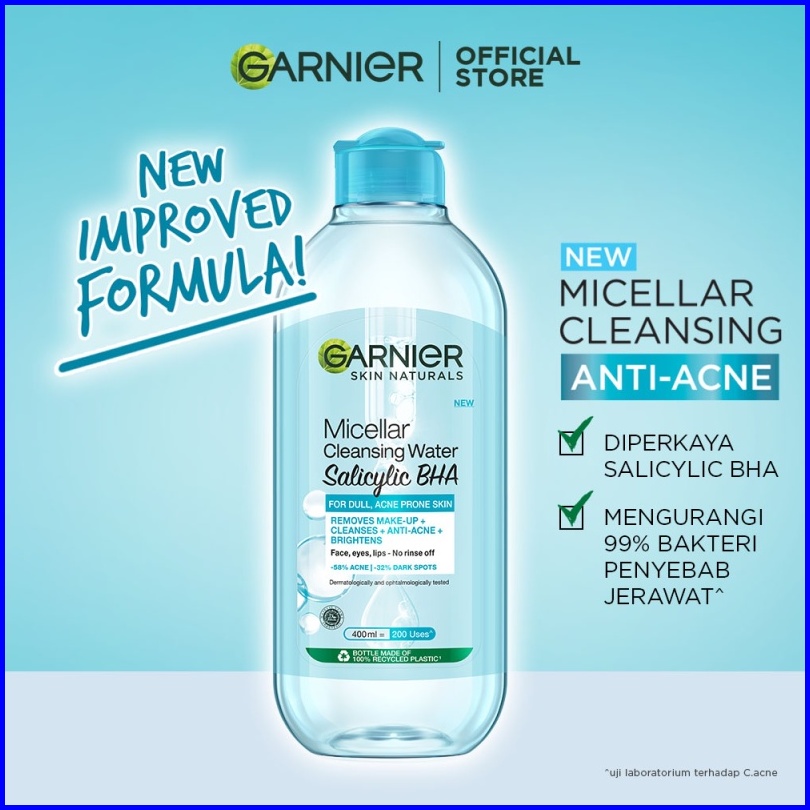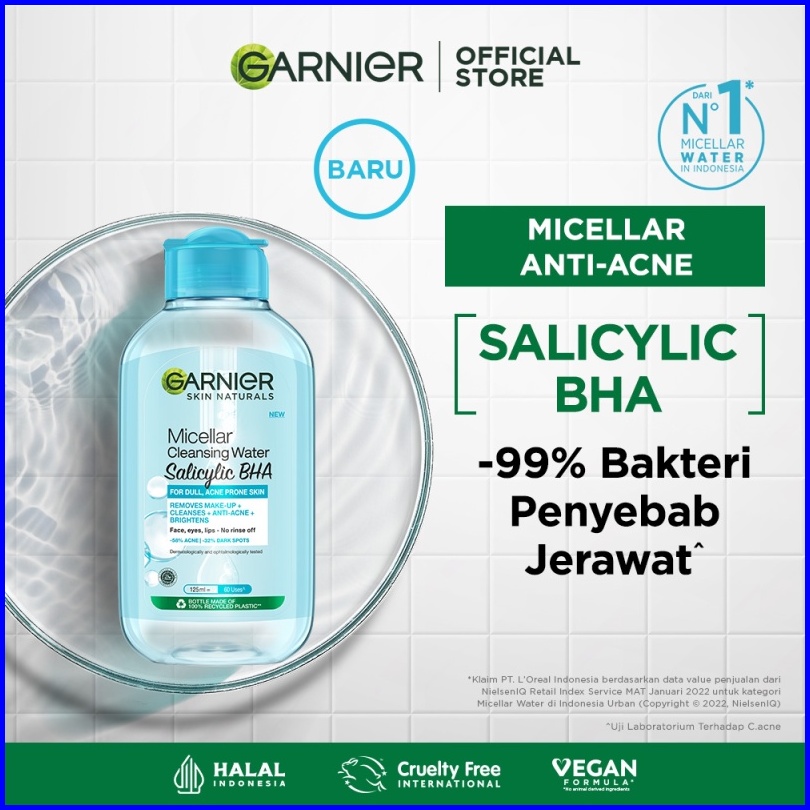 Garnier Micellar Cleansing Water Salicylic Blue Skin Care 125ml Pembersih Wajah Untuk Kulit Berminyak Rentan Berjerawat