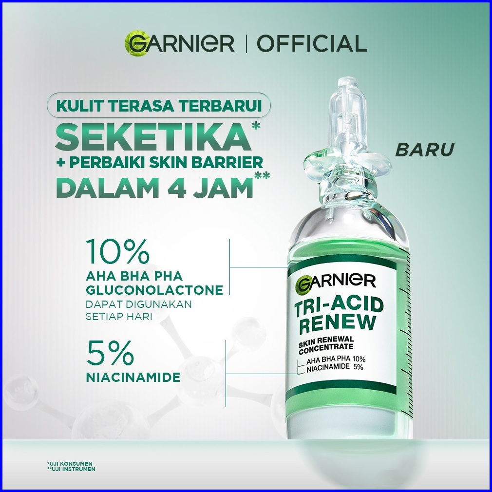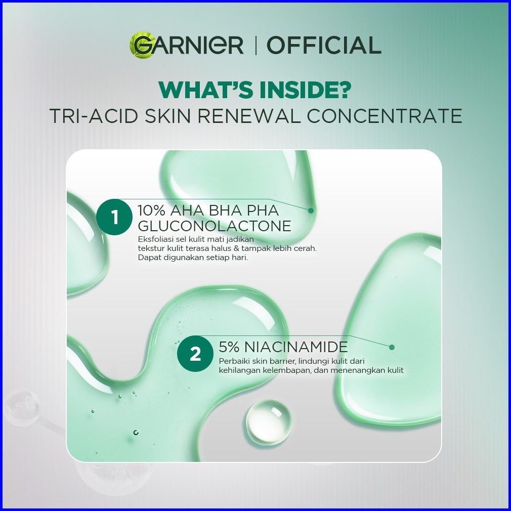 Baru Garnier Tri Acid Renew Peeling Exfoliating Serum - Glass Skin Aha Bha Pha 10 Niacinamide 5 Renewal Concentrate Kuli
