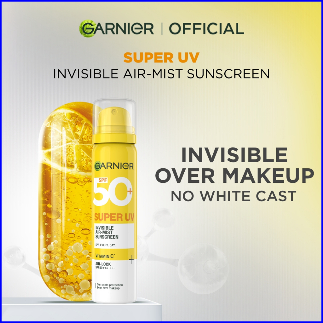 Garnier Super Uv Invisible Air-mist Sunscreen Spf50 Pa 75 Ml Sunscreen Spray Uv Mist Sun Shield Tabir Surya