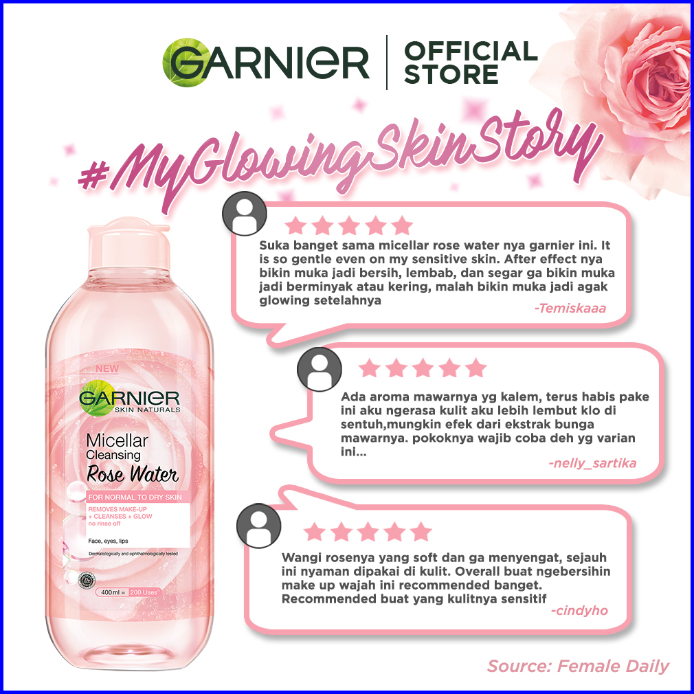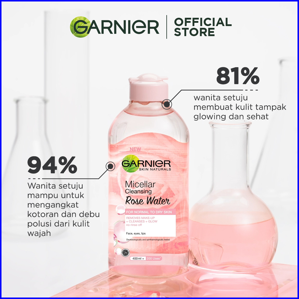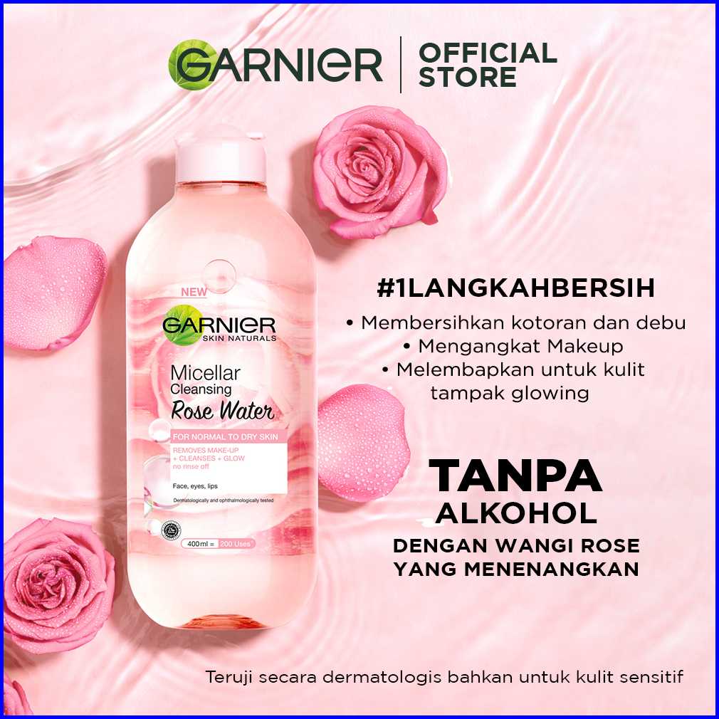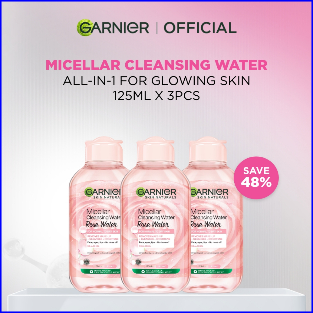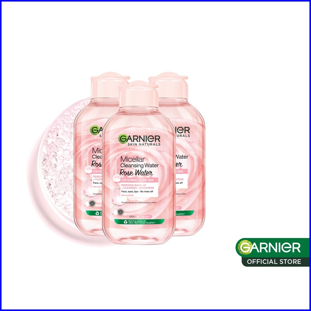 Paket Hemat Isi 3 Garnier Micellar Cleansing Rose Water Skin Care - 125ml Pembersih Wajah Make Up Mengandung Air Mawar U