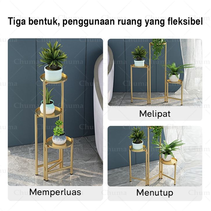 ⭐Garansi 3 Tahun&Dapat menanggung 40kg⭐Meja Sudut Standing Flower Emas/Meja Rak Tamaman Rak Hiasan Cofee table Hiasi bal