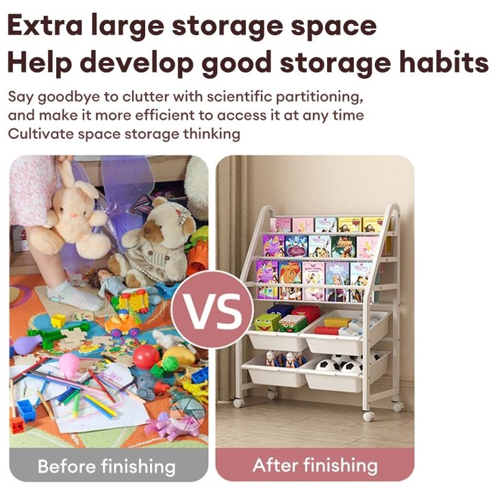 Rak Buku Susun Serbaguna Tempat Rak Buku Anak Rak Portable Roda Rak Mainan Rak Roda Toy Storage