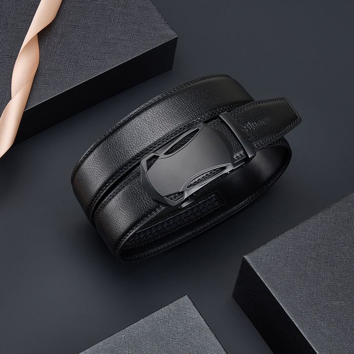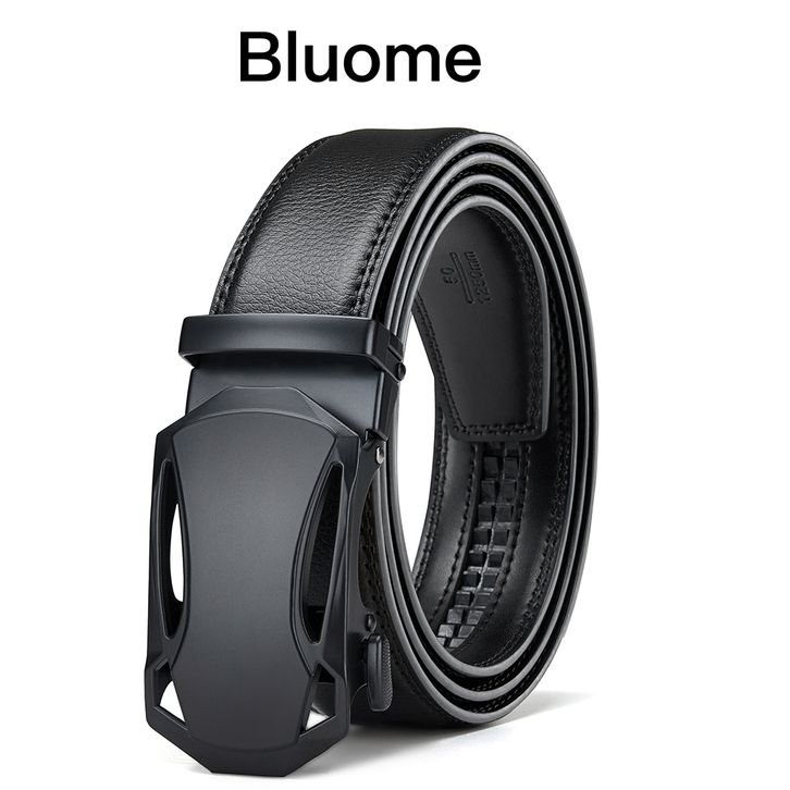 TERBARU Bluome Sabuk Ikat Pinggang Pria Kulit Sapi Asli Automatic Kepala Gesper Model Rel Belt Hitam Casual ihedh