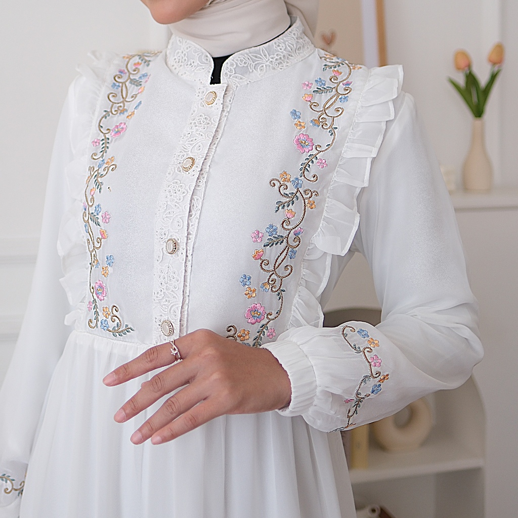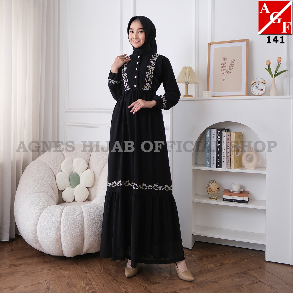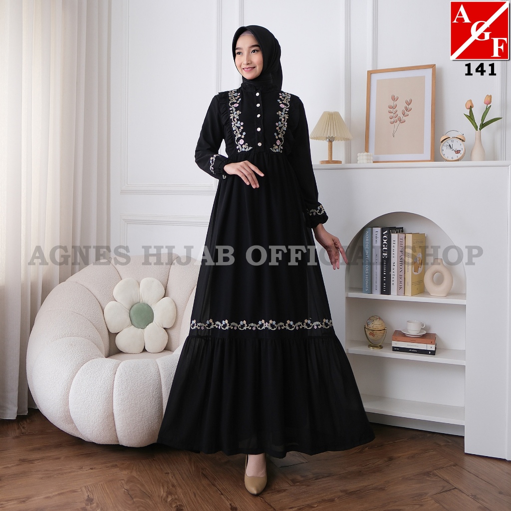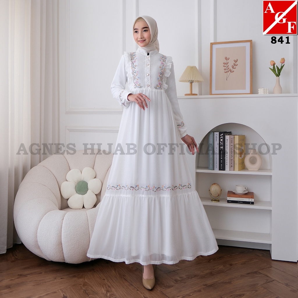 AGNES HIJAB - BELLA DRESS GAMIS PUTIH BAJU LEBARAN 2025 DRESS WANITA MUSLIM DEWASA REMAJA BORDIR BUNGA MEWAH ABAYA HITAM TURKEY HAJI UMROH TERBARU 841