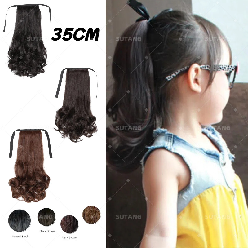 35cm Wig Ponytail Anak Rambut Palsu Extension Hair Clip Ponytail Model Pendek Keriting Ponytail Curly Tail